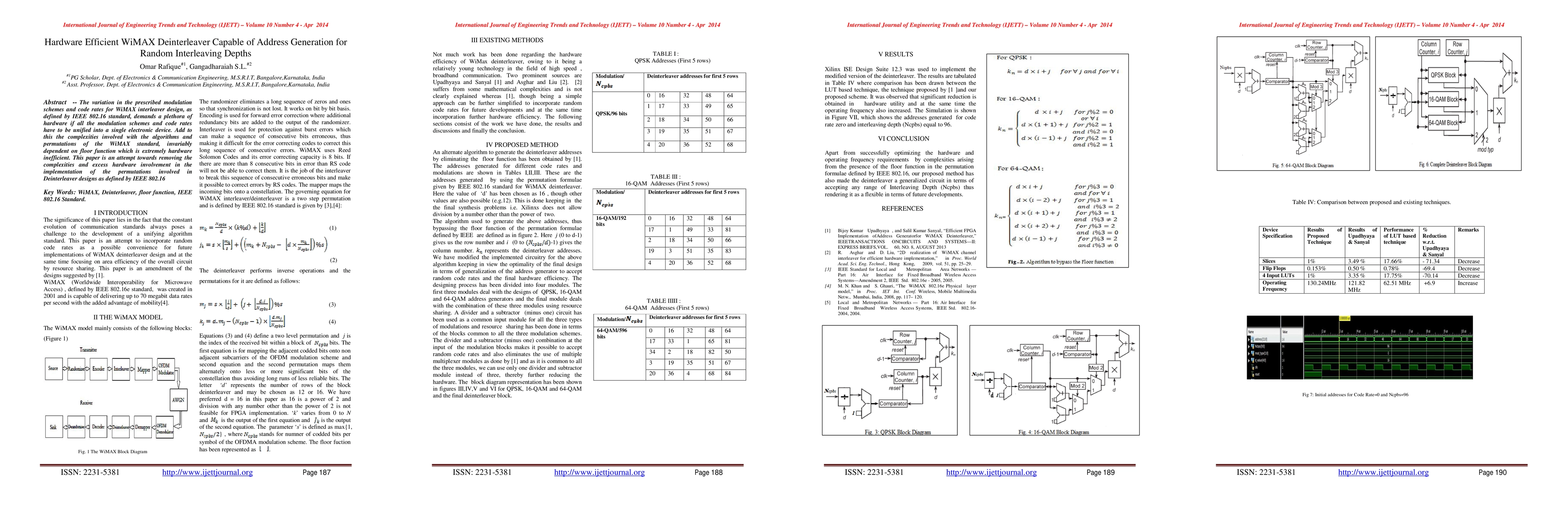 The variation in the prescribed modulation schemes and code rates for WiMAX interleaver design, as defined by IEEE 802.16 standard, demands a plethora of hardware if all the modulation schemes and code rates have to be unified into a single electronic device. Add to this the complexities involved with the algorithms and permutations of the WiMAX standard, invariably dependent on floor function which is extremely hardware inefficient. This paper is an attempt towards removing the complexities and excess hardware involvement in the implementation of the permutations involved in Deinterleaver designs as defined by IEEE 802.16
