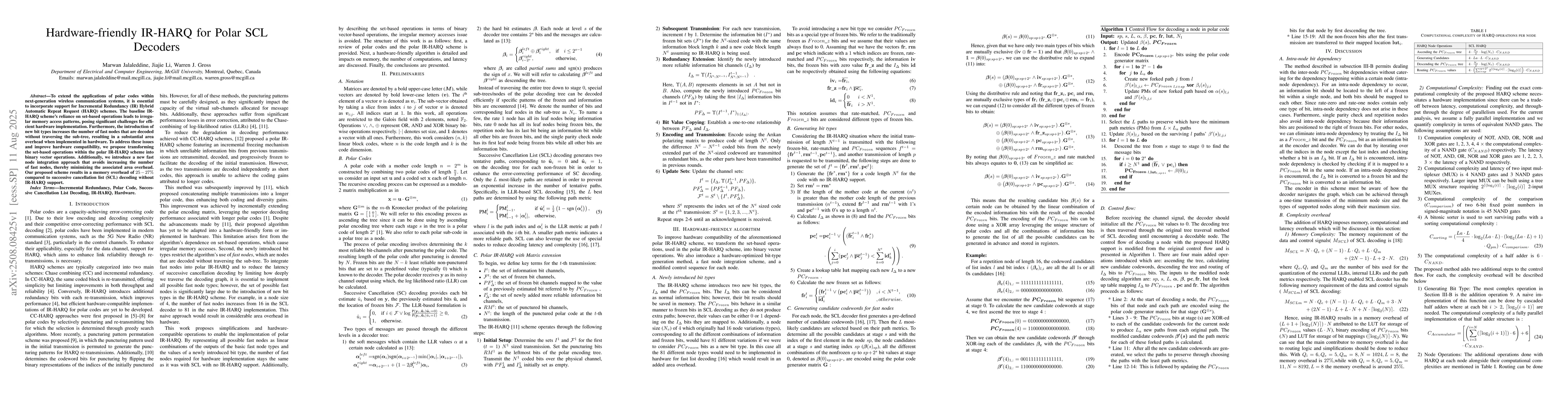 To extend the applications of polar codes within next-generation wireless communication systems, it is essential to incorporate support for Incremental Redundancy (IR) Hybrid Automatic Repeat Request (HARQ) schemes. The baseline IR-HARQ scheme's reliance on set-based operations leads to irregular memory access patterns, posing significant challenges for efficient hardware implementation. Furthermore, the introduction of new bit types increases the number of fast nodes that are decoded without traversing the sub-tree, resulting in a substantial area overhead when implemented in hardware. To address these issues and improve hardware compatibility, we propose transforming the set-based operations within the polar IR-HARQ scheme into binary vector operations. Additionally, we introduce a new fast node integration approach that avoids increasing the number of fast nodes, thereby minimizing the associated area overhead. Our proposed scheme results in a memory overhead of 25-27% compared to successive cancellation list (SCL) decoding without IR-HARQ support.