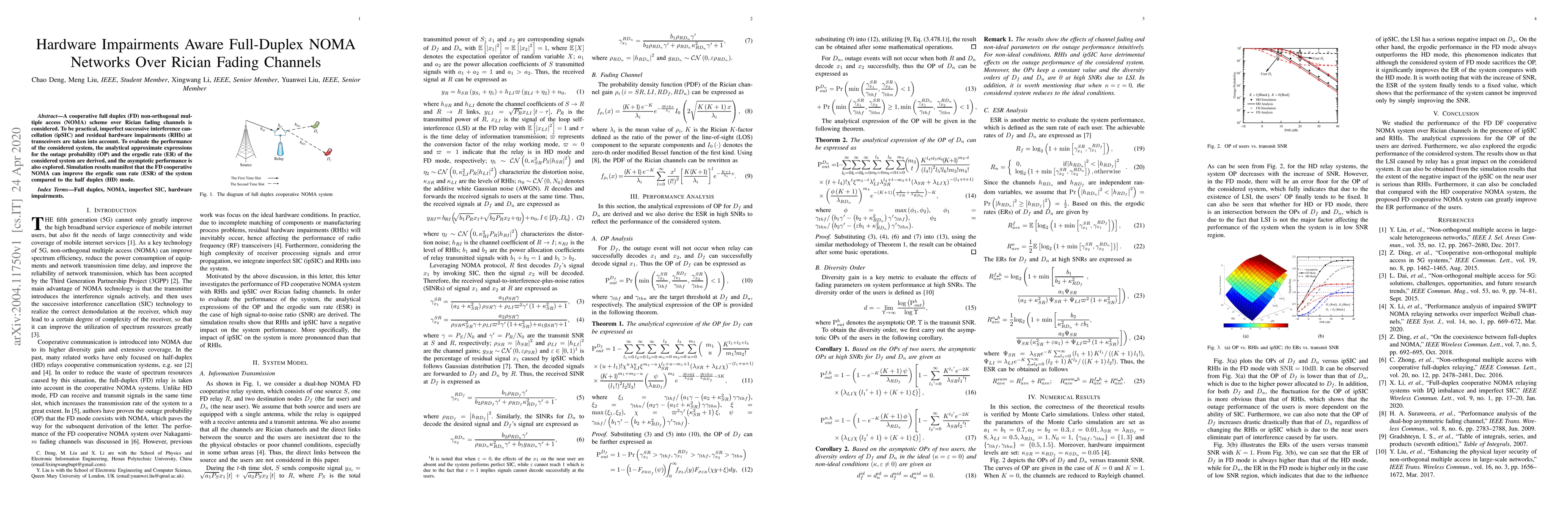 This paper investigates a cooperative full-duplex NOMA system over Rician fading channels, considering hardware impairments and imperfect successive interference cancellation. Analytical expressions for outage probability and ergodic rate are derived, showing that full-duplex NOMA enhances the ergodic sum rate compared to half-duplex mode.