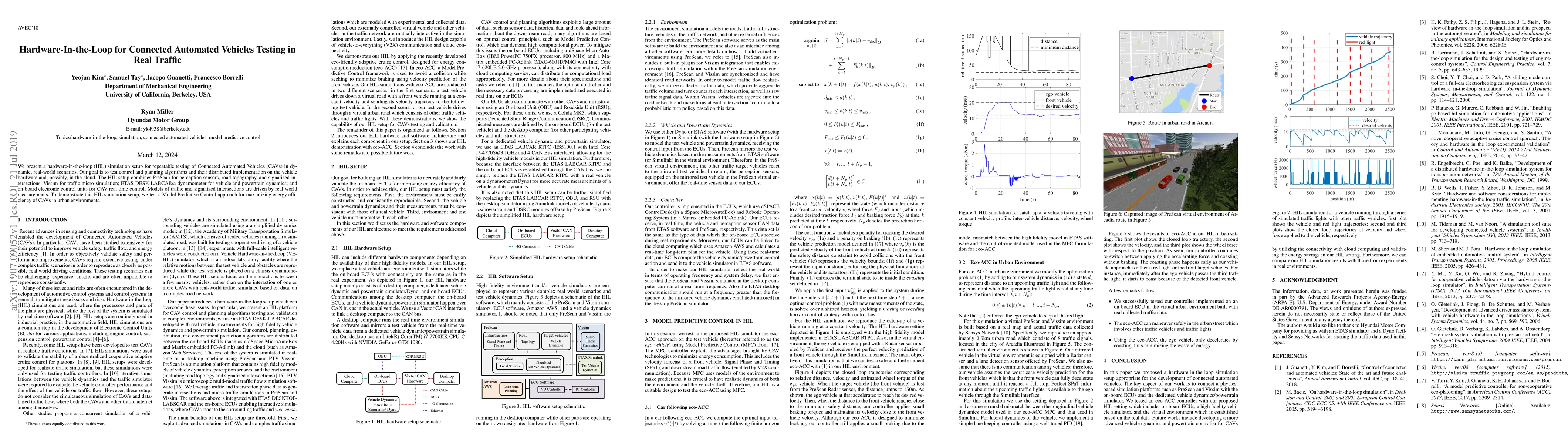 This paper introduces a hardware-in-the-loop (HIL) simulation setup for testing Connected Automated Vehicles (CAVs) in real traffic scenarios, combining various simulation tools and real-world data to evaluate control and planning algorithms. The study demonstrates the setup using a Model Predictive Control approach for optimizing CAV energy efficiency in urban environments.