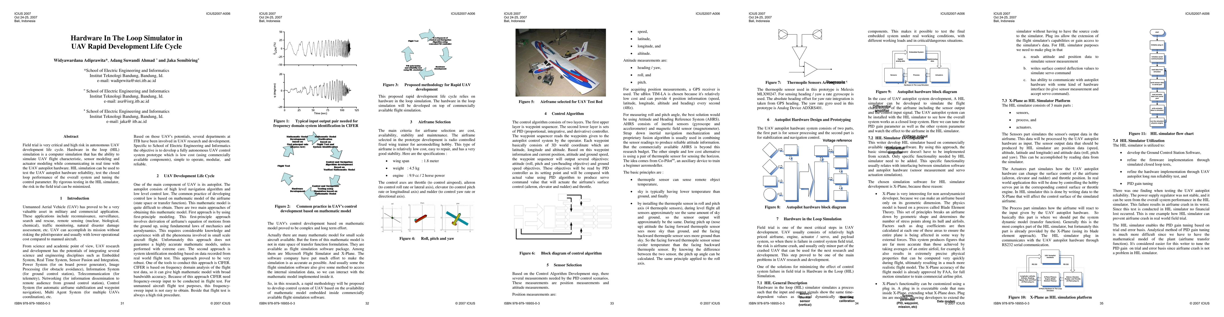 Field trial is very critical and high risk in autonomous UAV development life cycle. Hardware in the loop (HIL) simulation is a computer simulation that has the ability to simulate UAV flight characteristic, sensor modeling and actuator modeling while communicating in real time with the UAV autopilot hardware. HIL simulation can be used to test the UAV autopilot hardware reliability, test the closed loop performance of the overall system and tuning the control parameter. By rigorous testing in the HIL simulator, the risk in the field trial can be minimized.