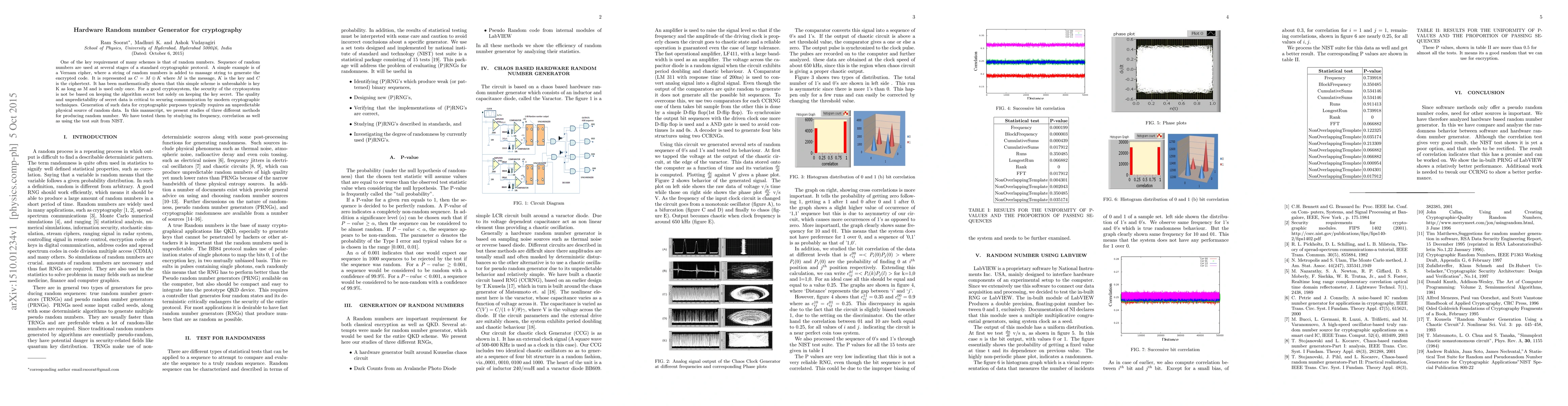 A research paper explores three methods for generating hardware random numbers, crucial for cryptography, testing their frequency, correlation, and predictability using the NIST test suite.