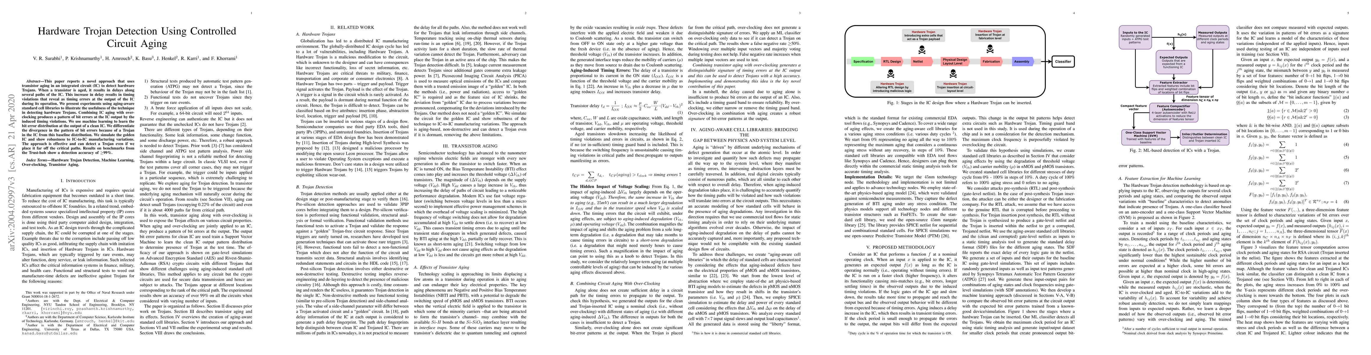 This paper proposes a novel method for detecting hardware Trojans using controlled circuit aging to induce timing violations, which are then identified via machine learning. The technique shows high detection accuracy of at least 99% and is robust to manufacturing variations.