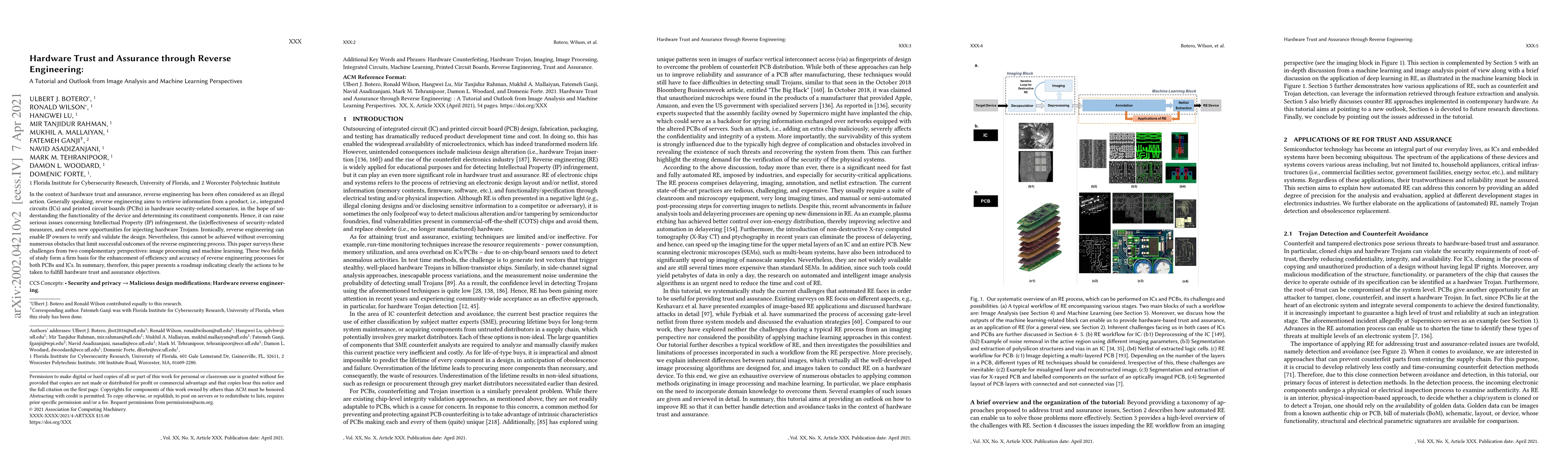 In the context of hardware trust and assurance, reverse engineering has been often considered as an illegal action. Generally speaking, reverse engineering aims to retrieve information from a product, i.e., integrated circuits (ICs) and printed circuit boards (PCBs) in hardware security-related scenarios, in the hope of understanding the functionality of the device and determining its constituent components. Hence, it can raise serious issues concerning Intellectual Property (IP) infringement, the (in)effectiveness of security-related measures, and even new opportunities for injecting hardware Trojans. Ironically, reverse engineering can enable IP owners to verify and validate the design. Nevertheless, this cannot be achieved without overcoming numerous obstacles that limit successful outcomes of the reverse engineering process. This paper surveys these challenges from two complementary perspectives: image processing and machine learning. These two fields of study form a firm basis for the enhancement of efficiency and accuracy of reverse engineering processes for both PCBs and ICs. In summary, therefore, this paper presents a roadmap indicating clearly the actions to be taken to fulfill hardware trust and assurance objectives.