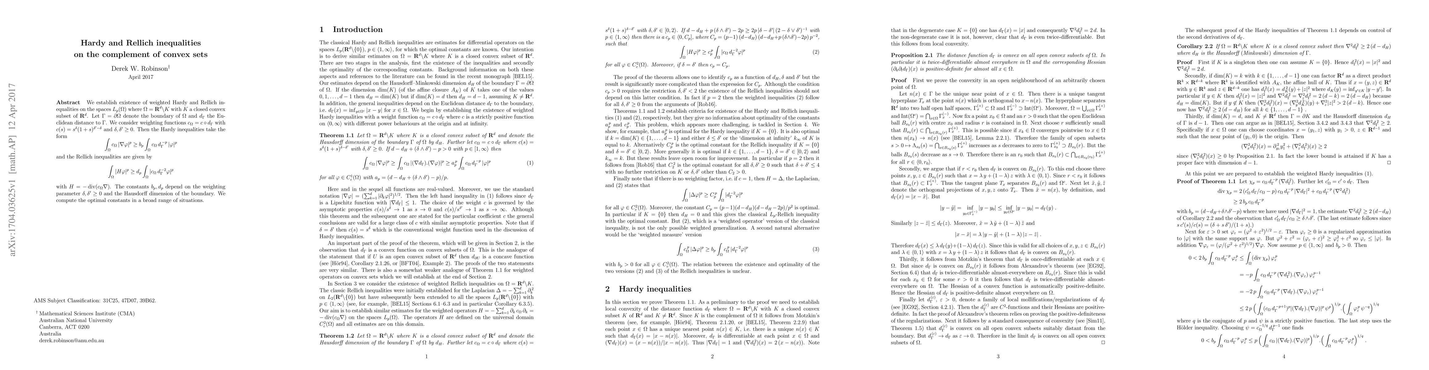 We establish existence of weighted Hardy and Rellich inequalities on the spaces $L_p(\Omega)$ where $\Omega= \Ri^d\backslash K$ with $K$ a closed convex subset of $\Ri^d$. Let $\Gamma=\partial\Omega$ denote the boundary of $\Omega$ and $d_\Gamma$ the Euclidean distance to $\Gamma$. We consider weighting functions $c_\Omega=c\circ d_\Gamma$ with $c(s)=s^\delta(1+s)^{\delta'-\delta}$ and $\delta,\delta'\geq0$. Then the Hardy inequalities take the form \[ \int_\Omega c_\Omega\,|\nabla\varphi|^p\geq b_p\int_\Omega c_\Omega\,d_\Gamma^{\;-p}\,|\varphi|^p \] and the Rellich inequalities are given by \[ \int_\Omega|H\varphi|^p\geq d_p\int_\Omega |c_\Omega\,d_\Gamma^{\,-2}\varphi|^p \] with $H=-\divv(c_\Omega\nabla)$. The constants $b_p, d_p$ depend on the weighting parameter $\delta,\delta'\geq0$ and the Hausdorff dimension of the boundary. We compute the optimal constants in a broad range of situations.