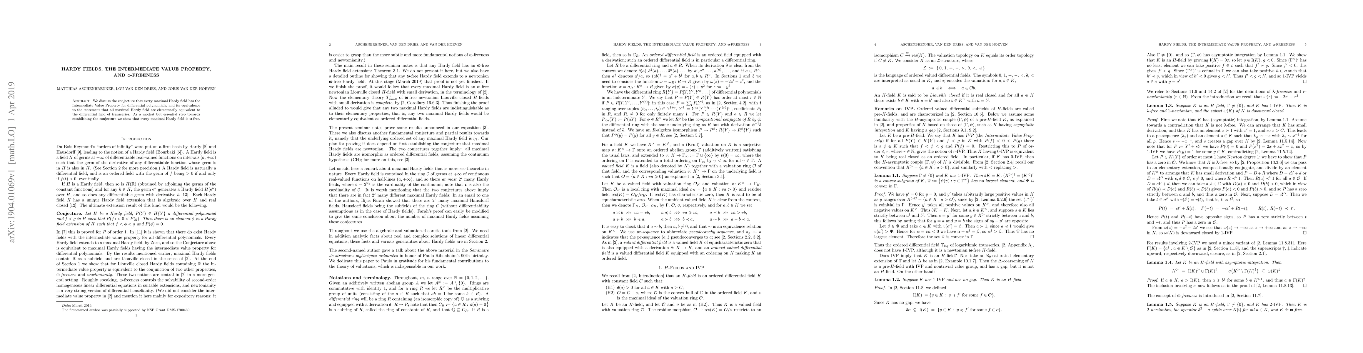 We discuss the conjecture that every maximal Hardy field has the Intermediate Value Property for differential polynomials, and its equivalence to the statement that all maximal Hardy field are elementarily equivalent to the differential field of transseries. As a modest but essential step towards establishing the conjecture we show that every maximal Hardy field is $\omega$-free.