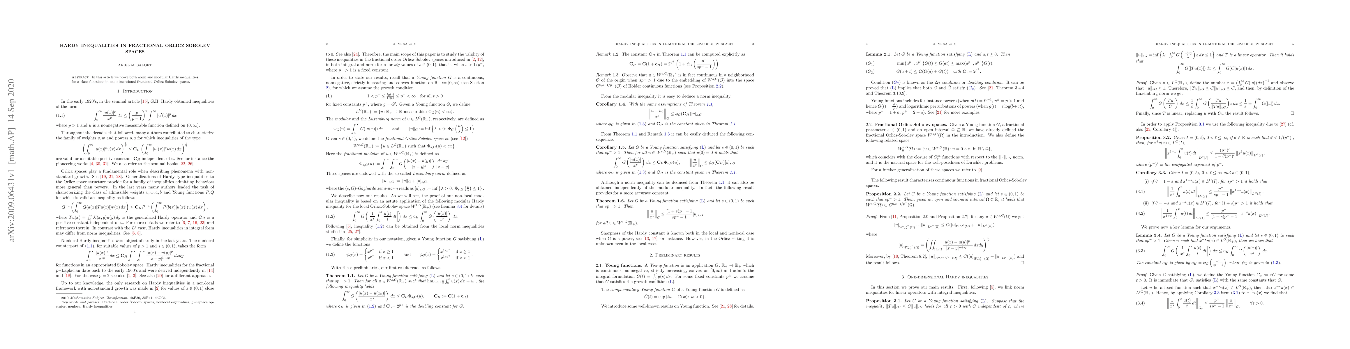 Summary: This paper establishes norm and modular Hardy inequalities for functions within one-dimensional fractional Orlicz-Sobolev spaces, extending classical Hardy inequalities to a more generalized and complex setting.