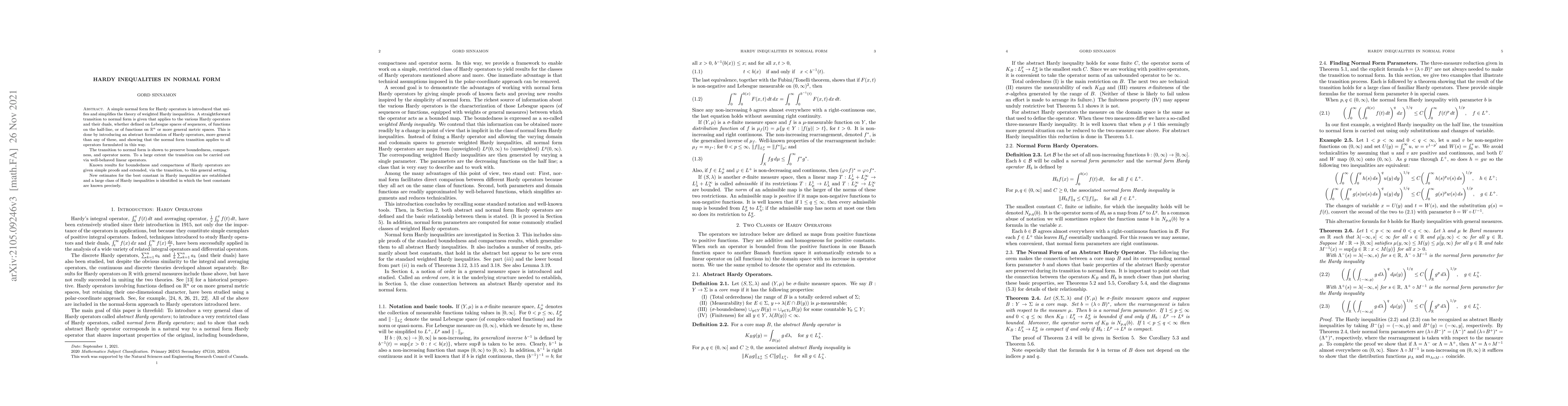 This paper introduces a unified normal form for Hardy operators, simplifying the theory of weighted Hardy inequalities. It demonstrates that this normal form transition preserves key operator properties, extends known results, and provides new estimates for best constants in Hardy inequalities, identifying a broad class of such inequalities with precisely known constants.