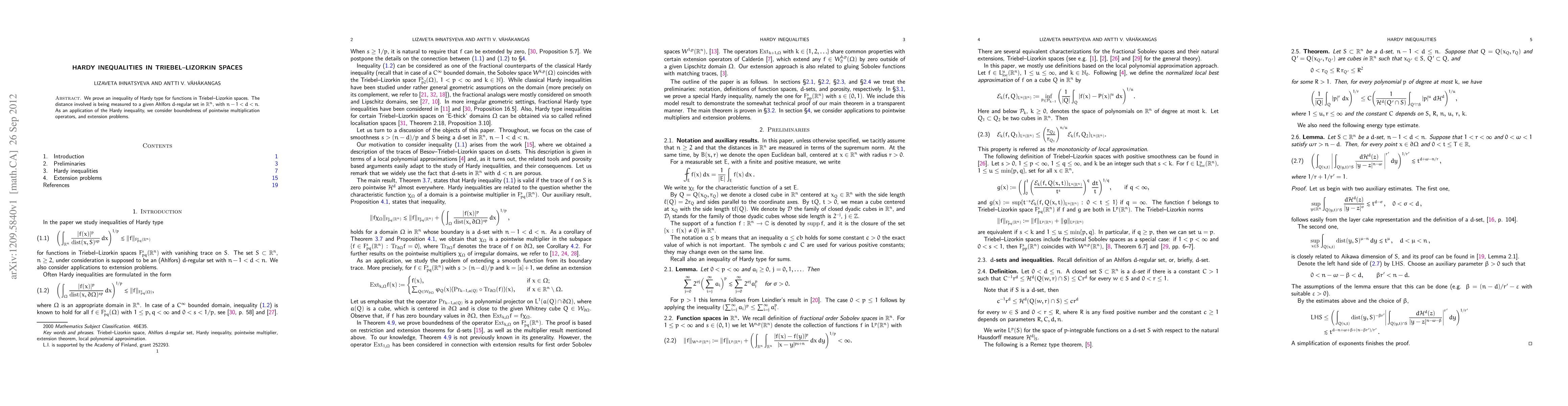 This paper establishes a Hardy inequality for functions in Triebel-Lizorkin spaces, where the distance is measured to a given Ahlfors d-regular set. The authors apply this inequality to study the boundedness of pointwise multiplication operators and extension problems.