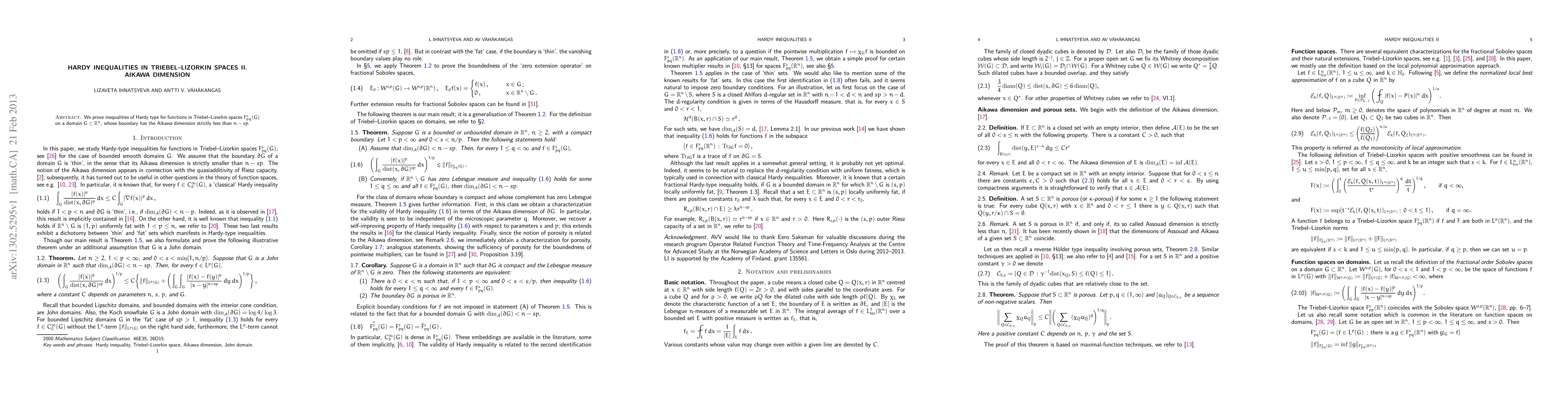 Summary: This paper establishes Hardy inequalities for functions in Triebel-Lizorkin spaces $F^s_{pq}(G)$ on domains $G\subset\mathbb{R}^n$ with boundaries characterized by Aikawa dimension strictly less than $n-sp$. The results extend the applicability of Hardy inequalities to these function spaces under specific boundary conditions.
