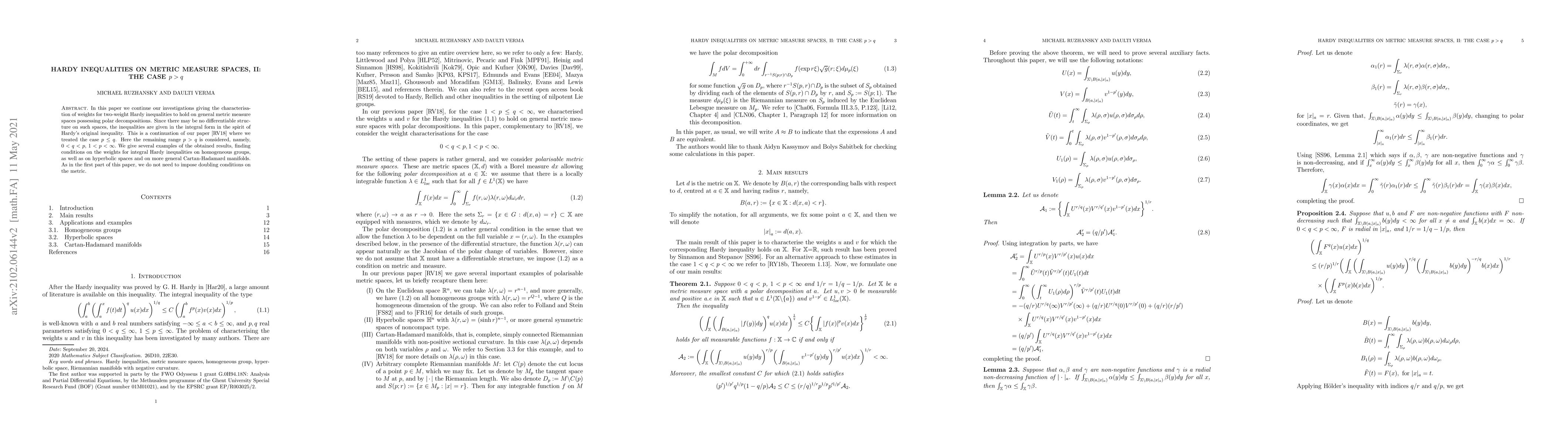 Ruzhansky and D. Verma. Hardy inequalities on metric measure spaces, Proc. R.