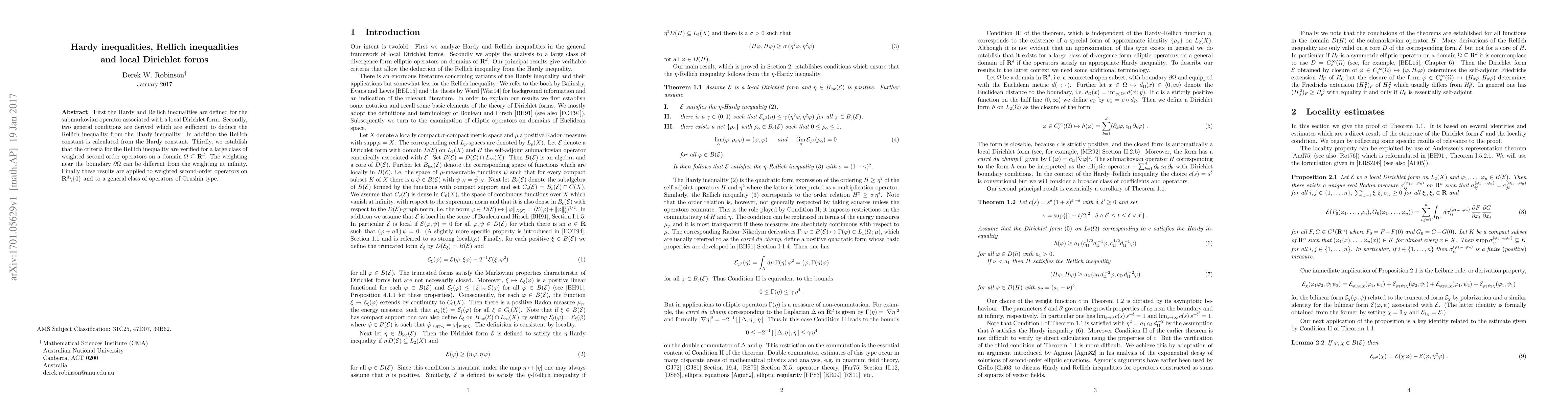First the Hardy and Rellich inequalities are defined for the submarkovian operator associated with a local Dirichlet form. Secondly, two general conditions are derived which are sufficient to deduce the Rellich inequality from the Hardy inequality. In addition the Rellich constant is calculated from the Hardy constant. Thirdly, we establish that the criteria for the Rellich inequality are verified for a large class of weighted second-order operators on a domain $\Omega\subseteq \Ri^d$. The weighting near the boundary $\partial \Omega$ can be different from the weighting at infinity. Finally these results are applied to weighted second-order operators on $\Ri^d\backslash\{0\}$ and to a general class of operators of Grushin type.
