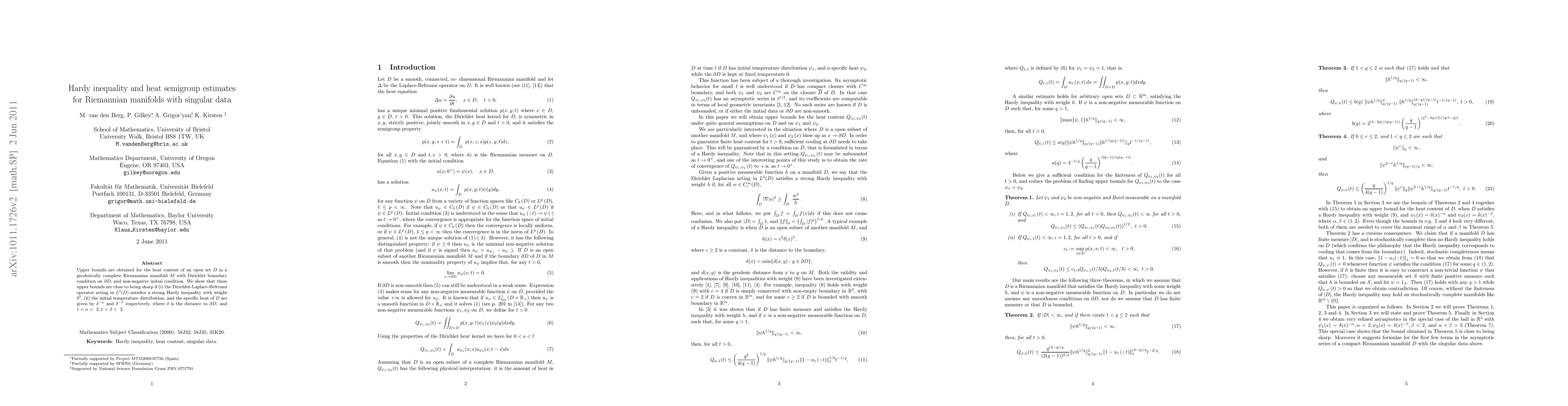 Research paper establishes upper bounds for heat content in Riemannian manifolds with Dirichlet boundary condition, focusing on conditions that make these bounds sharp, such as specific initial temperature distribution and heat properties.