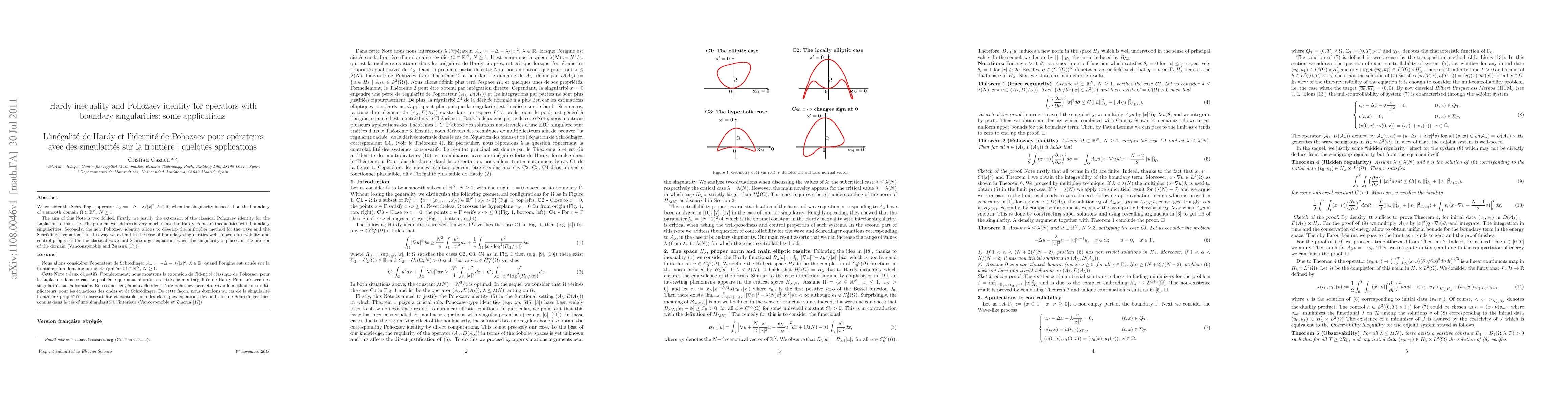 We consider the Schr\"{o}dinger operator $A_\l:=-\D -\l/|x|^2$, $\l\in \rr$, when the singularity is located on the boundary of a smooth domain $\Omega\subset \rr^N$, $N\geq 1$ The aim of this Note is two folded. Firstly, we justify the extension of the classical Pohozaev identity for the Laplacian to this case. The problem we address is very much related to Hardy-Poincar\'{e} inequalities with boundary singularities. Secondly, the new Pohozaev identity allows to develop the multiplier method for the wave and the Schr\"{o}dinger equations. In this way we extend to the case of boundary singularities well known observability and control properties for the classical wave and Schr\"{o}dinger equations when the singularity is placed in the interior of the domain (Vanconstenoble and Zuazua \cite{judith}).