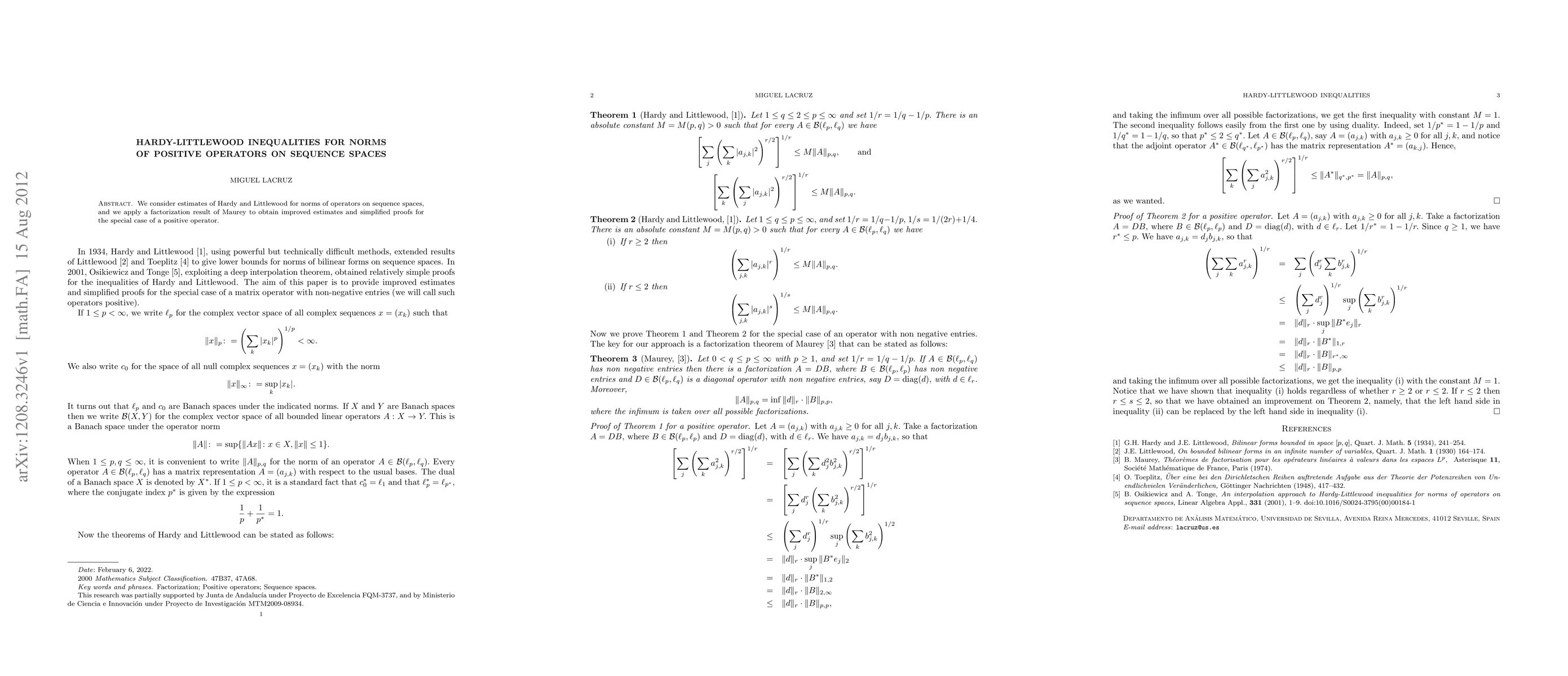 We consider estimates of Hardy and Littlewood for norms of operators on sequence spaces, and we apply a factorization result of Maurey to obtain improved estimates and simplified proofs for the special case of a positive operator.
