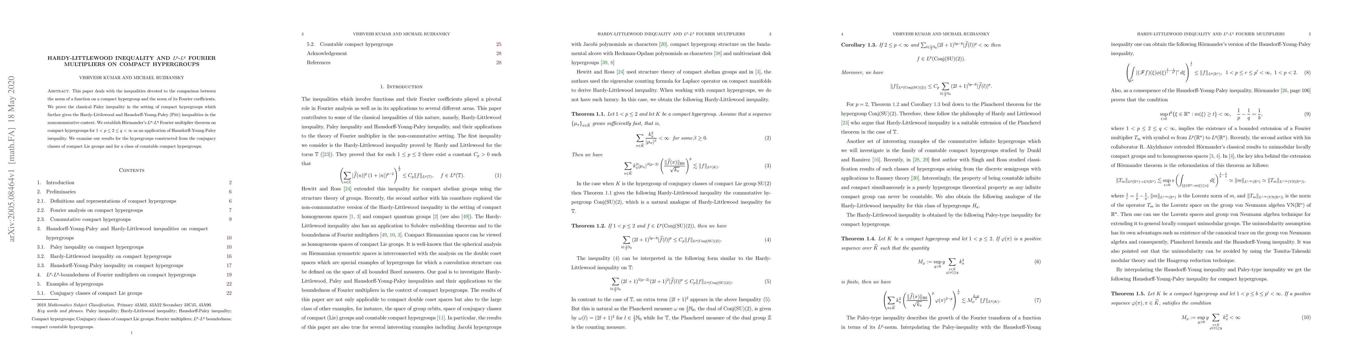 This paper proves the Paley, Hardy-Littlewood, and Hausdorff-Young-Paley inequalities in the context of compact hypergroups, establishing H\"ormander's $L^p$-$L^q$ Fourier multiplier theorem as an application, and applies these results to hypergroups derived from compact Lie groups and countable compact hypergroups.