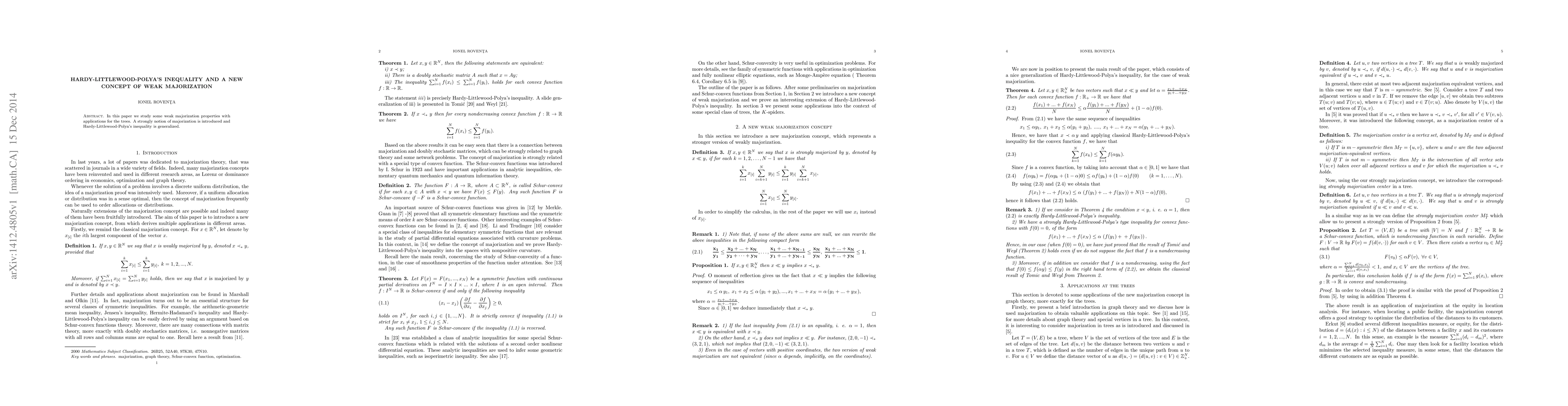 In this paper we study some weak majorization properties with applications for the trees. A strongly notion of majorization is introduced and Hardy-Littlewood-Polya's inequality is generalized.