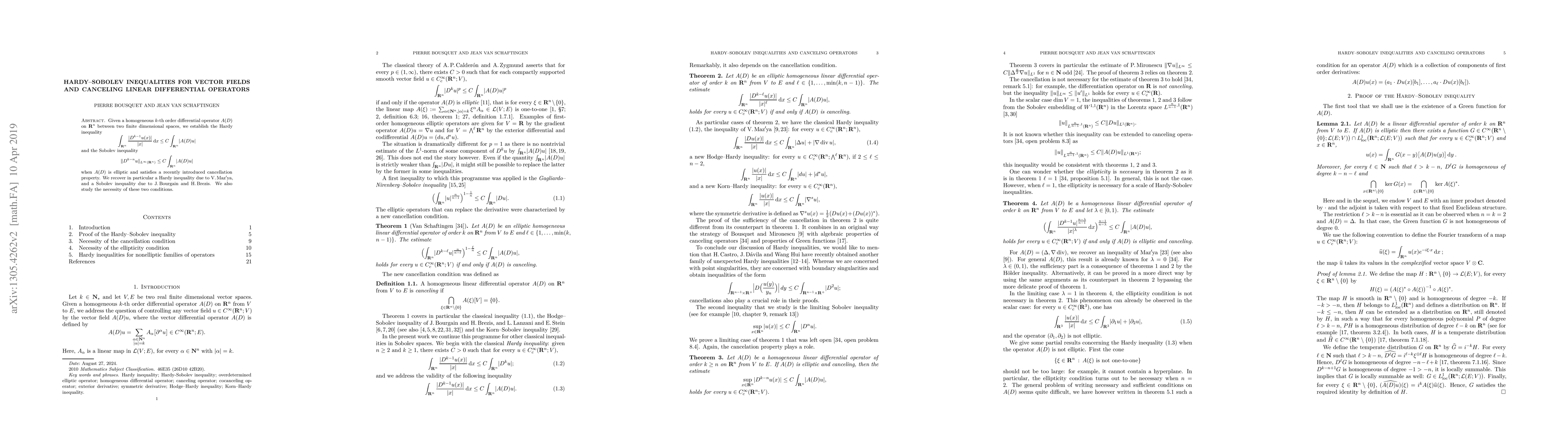 Researchers establish Hardy-Sobolev inequalities for vector fields with canceling linear differential operators, relating to elliptic operators that satisfy a specific cancellation property.