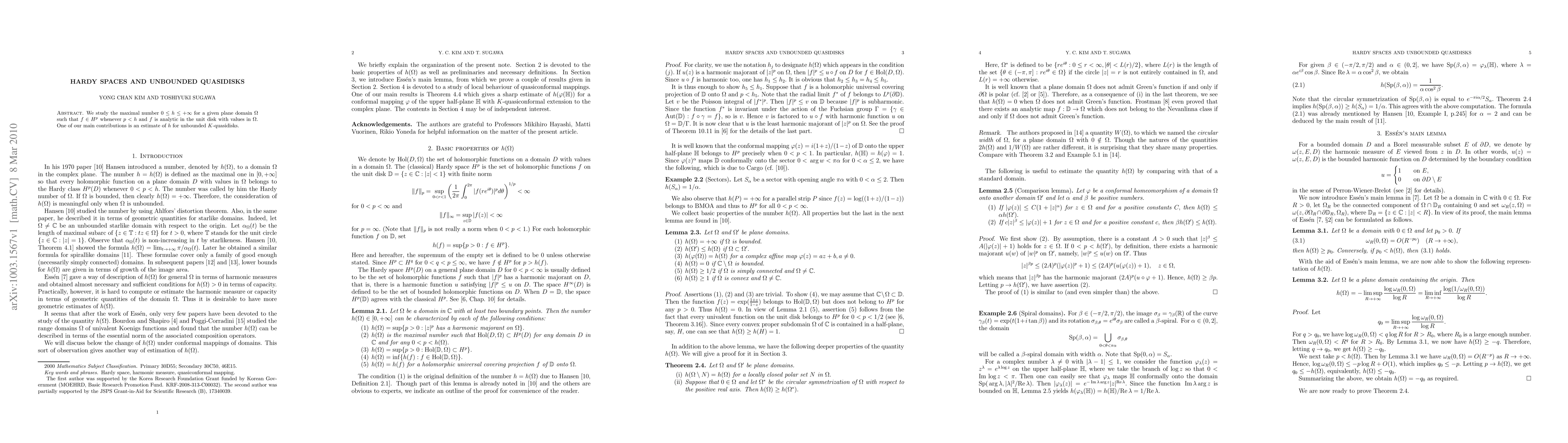 Researchers studied the maximal number of Hardy spaces that allow a function to be analytic in the unit disk with values in an unbounded K-quasidisk, finding an estimate for this value.