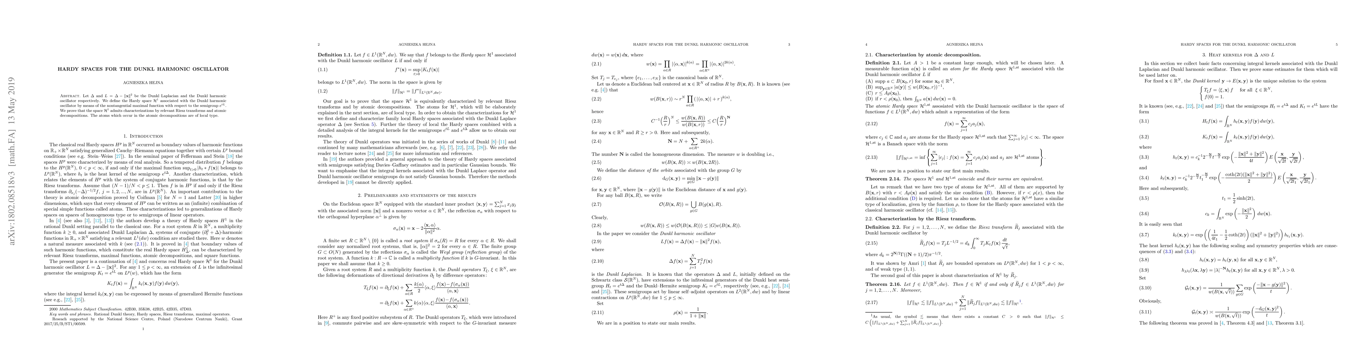 Let $\Delta$ and $L=\Delta -\|\mathbf x\|^2$ be the Dunkl Laplacian and the Dunkl harmonic oscillator respectively. We define the Hardy space $\mathcal H^1$ associated with the Dunkl harmonic oscillator by means of the nontangential maximal function with respect to the semigroup $e^{tL}$. We prove that the space $\mathcal H^1$ admits characterizations by relevant Riesz transforms and atomic decompositions. The atoms which occur in the atomic decompositions are of local type.