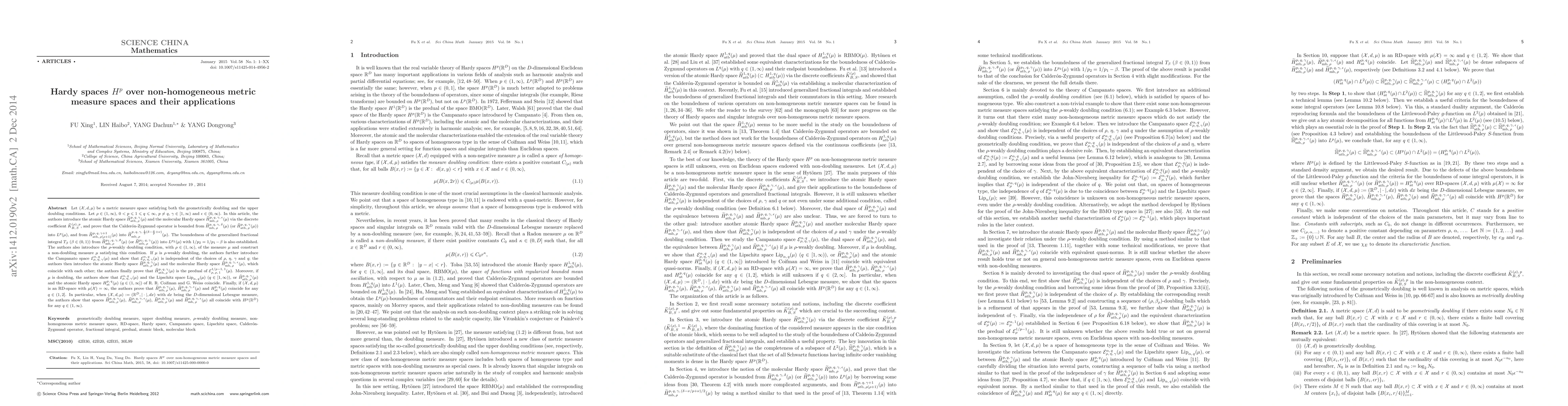 Let $({\mathcal X},d,\mu)$ be a metric measure space satisfying both the geometrically doubling and the upper doubling conditions. Let $\rho\in (1,\infty)$, $0