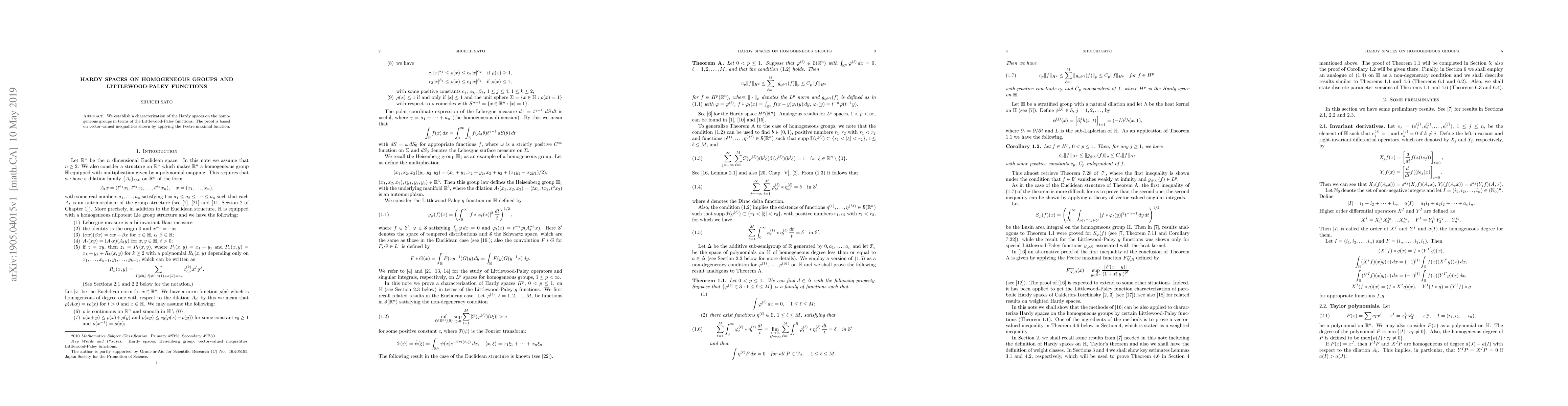 This paper characterizes Hardy spaces on homogeneous groups using Littlewood-Paley functions, relying on vector-valued inequalities derived from the Peetre maximal function for the proof.