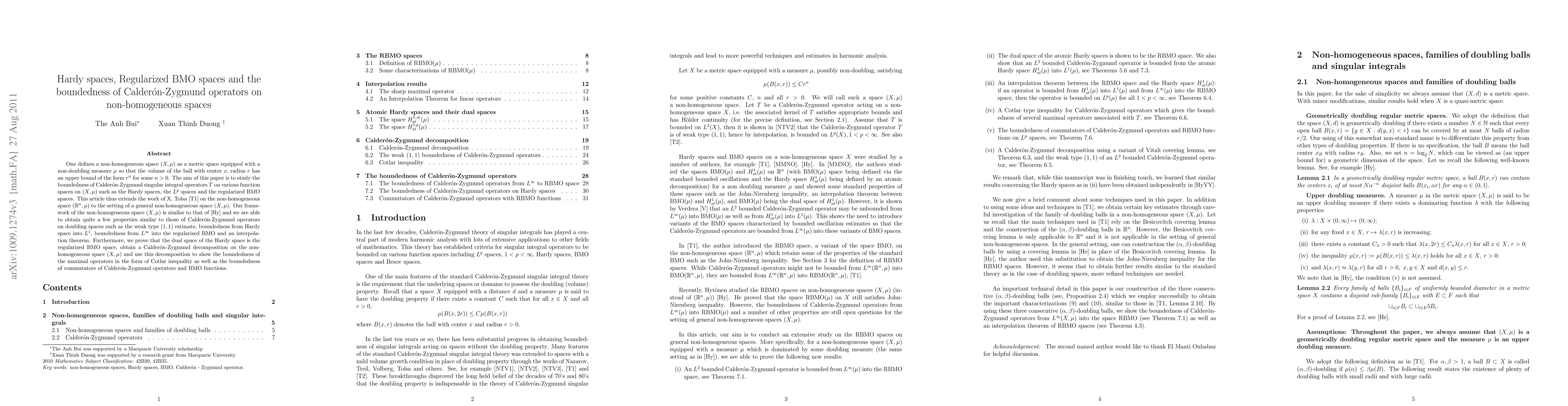 This paper extends the boundedness properties of Calder\'on-Zygmund operators on non-homogeneous spaces $(X, \mu)$, including weak type $(1,1)$ estimates, boundedness from Hardy spaces into $L^1$, and from $L^{\infty}$ into regularized BMO, and proves the dual relationship between Hardy and regularized BMO spaces.
