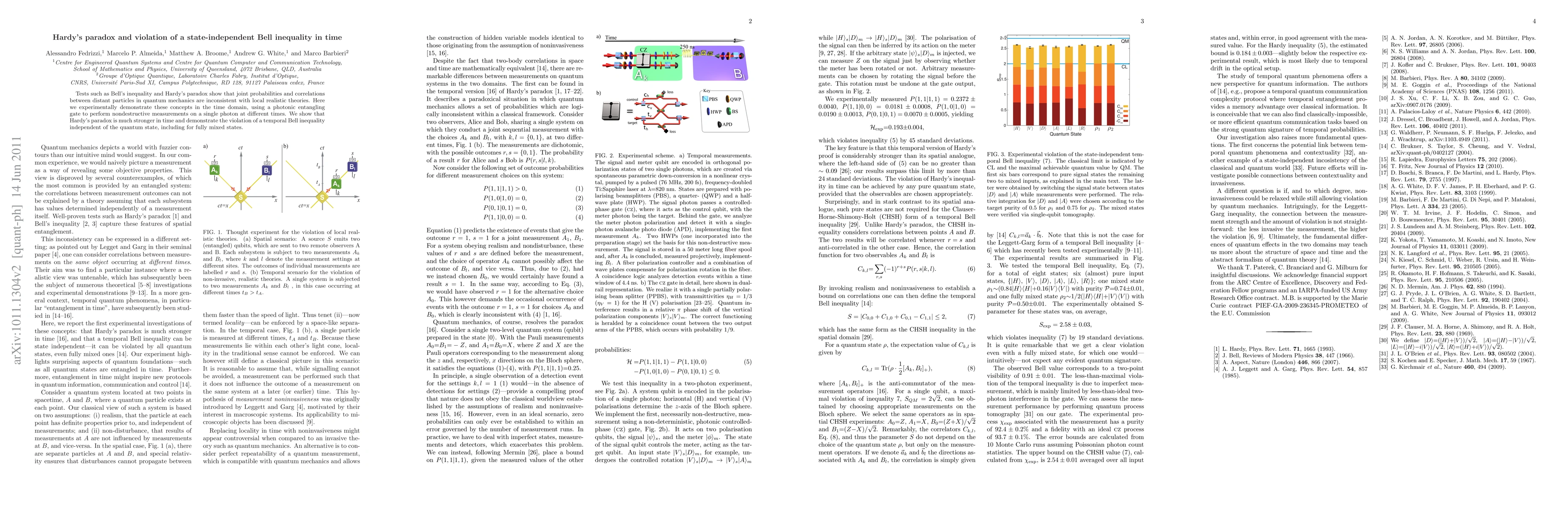 This paper experimentally demonstrates Hardy's paradox and violations of a state-independent temporal Bell inequality using photonic entangling gates, showing that quantum mechanics' joint probabilities and correlations contradict local realistic theories, even for fully mixed states.