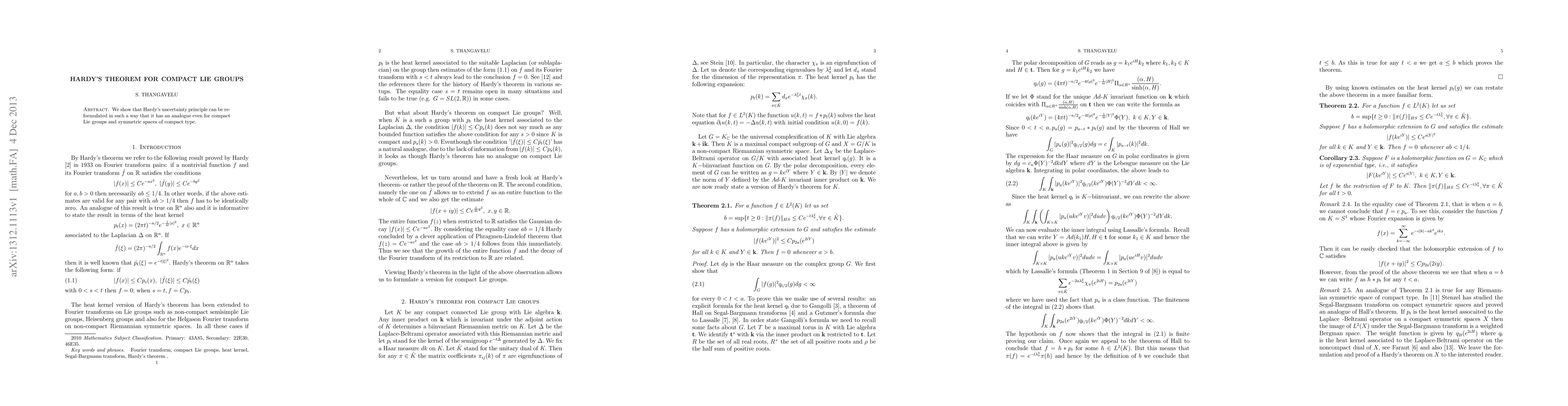 The research uses Hardy's uncertainty principle and polar decomposition to prove a version of Hall's theorem for compact Lie groups.