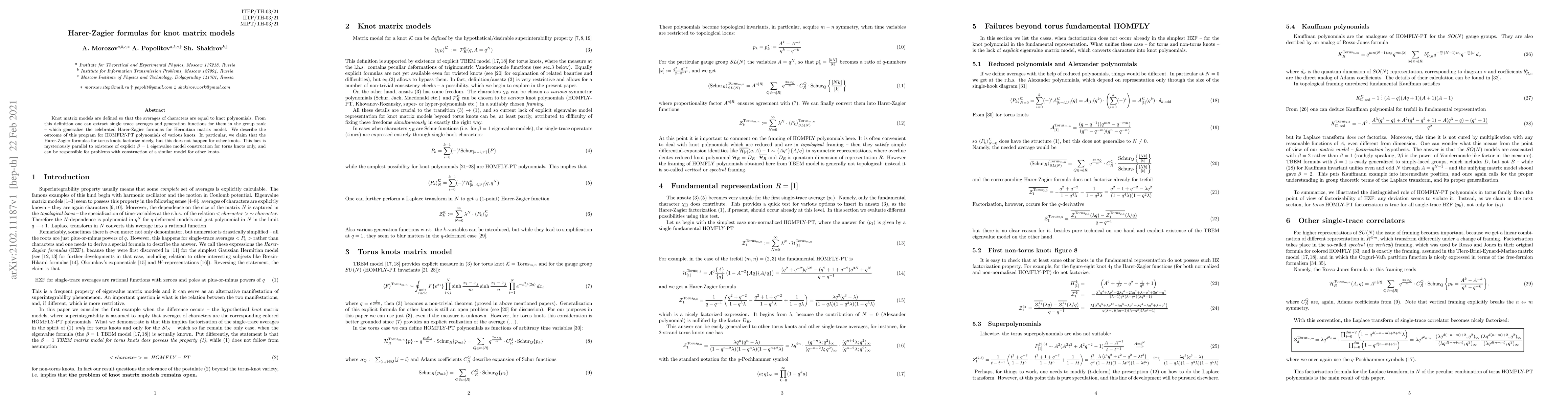 This paper explores knot matrix models where averages of characters correspond to knot polynomials, deriving single trace averages and generation functions. It finds that Harer-Zagier formulas for torus knots factorize neatly, unlike other knots, mirroring the exclusive existence of a beta=1 eigenvalue model for torus knots.