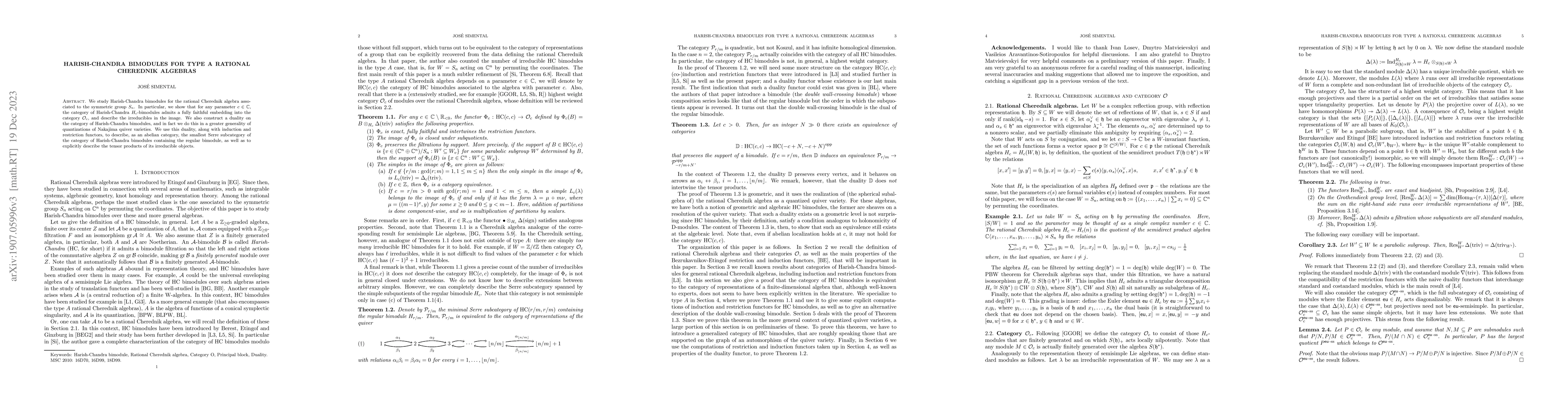 This paper investigates Harish-Chandra bimodules for type A rational Cherednik algebras, demonstrating a fully faithful embedding of these bimodules into category $\mathcal{O}_{c}$ and identifying the irreducible objects in the image. It also constructs a duality applicable to a broader context of Nakajima quiver varieties, using this duality to describe the smallest Serre subcategory containing the regular bimodule and its irreducible tensor products.