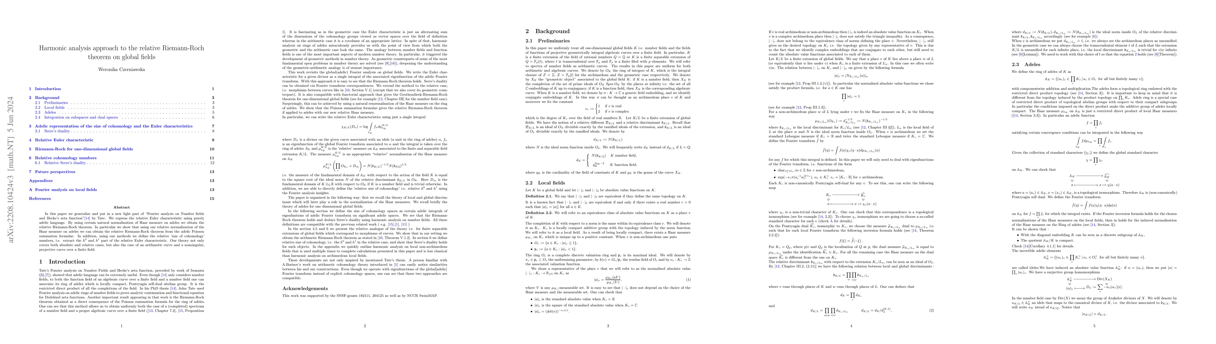 This paper generalizes Tate's work on Fourier analysis and Hecke's zeta function, reformulating the relative Riemann-Roch theorem using adelic language and a normalized Haar measure. It also defines relative cohomology size numbers and covers both absolute and relative cases, including arithmetic and projective curves over finite fields.