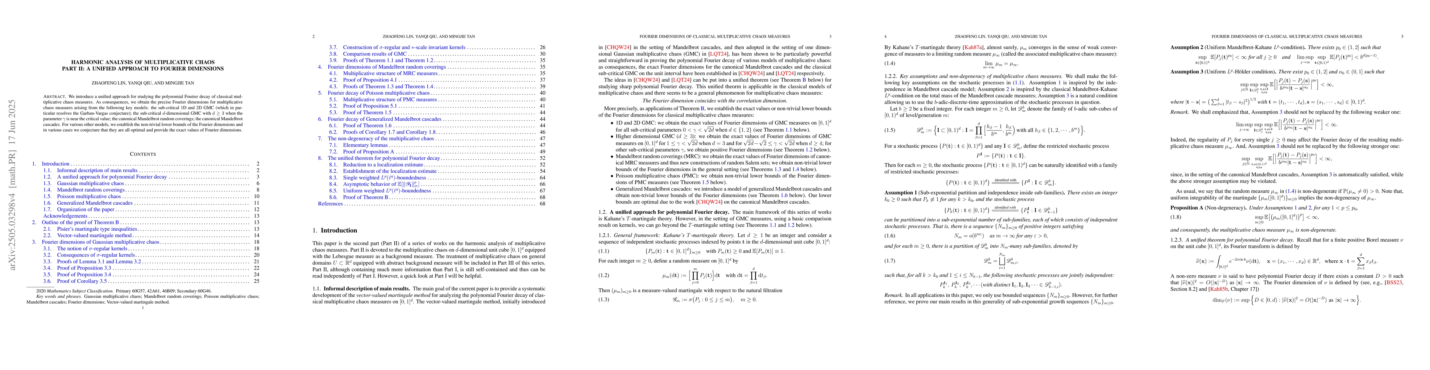 This paper studies the Fourier dimensions of classical multiplicative chaos measures, finding precise values for several key models and establishing lower bounds for others, with implications for understanding complex systems.