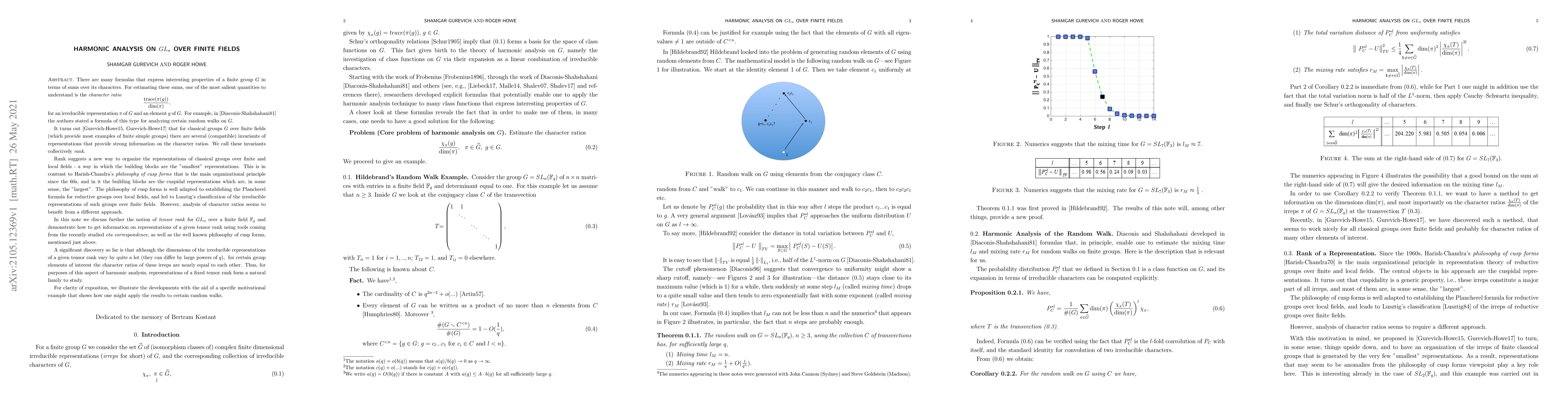There are many formulas that express interesting properties of a finite group G in terms of sums over its characters. For estimating these sums, one of the most salient quantities to understand is the character ratio trace(\pi(g)) / dim(\pi), for an irreducible representation \pi of G and an element g of G. It turns out [Gurevich-Howe15, Gurevich-Howe17] that for classical groups G over finite fields there are several (compatible) invariants of representations that provide strong information on the character ratios. We call these invariants collectively rank. Rank suggests a new way to organize the representations of classical groups over finite and local fields - a way in which the building blocks are the "smallest" representations. This is in contrast to Harish-Chandra's philosophy of cusp forms that is the main organizational principle since the 60s, and in it the building blocks are the cuspidal representations which are, in some sense, the "LARGEST". The philosophy of cusp forms is well adapted to establishing the Plancherel formula for reductive groups over local fields, and led to Lusztig's classification of the irreducible representations of such groups over finite fields. However, analysis of character ratios might benefit from a different approach. In this note we discuss further the notion of tensor rank for GL_n over a finite field F_q and demonstrate how to get information on representations of a given tensor rank using tools coming from the recently studied eta correspondence, as well as the well known philosophy of cusp forms, mentioned just above. A significant discovery so far is that although the dimensions of the irreducible representations of a given tensor rank vary by quite a lot (they can differ by large powers of q), for certain group elements of interest the character ratios of these irreps are nearly equal to each other.