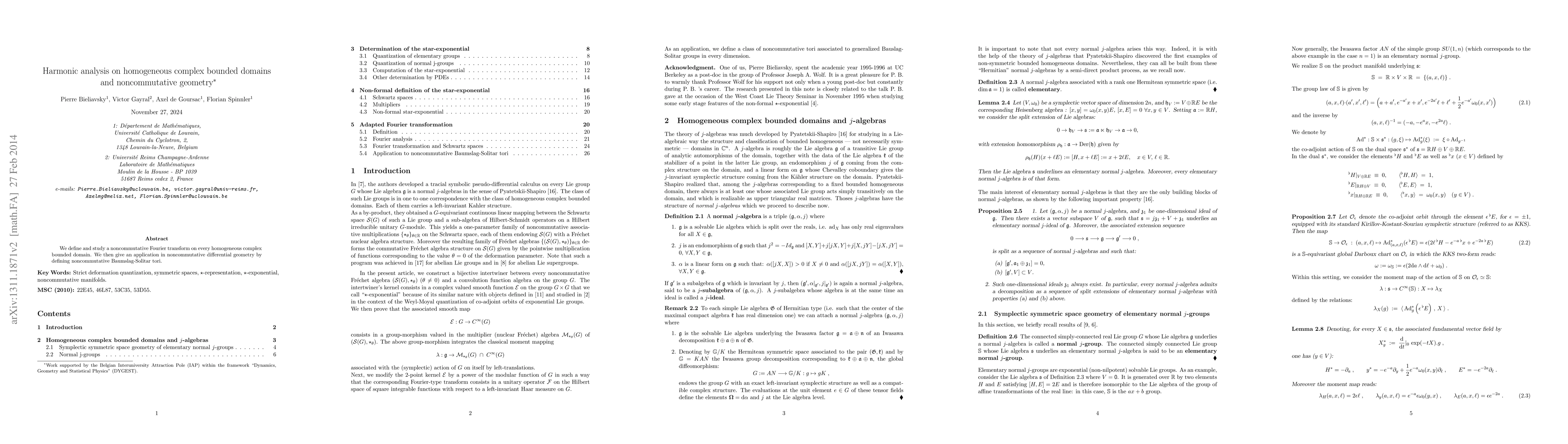 Summary: This paper introduces a noncommutative Fourier transform on homogeneous complex bounded domains and applies it to define noncommutative Baumslag-Solitar tori, linking harmonic analysis with noncommutative differential geometry.