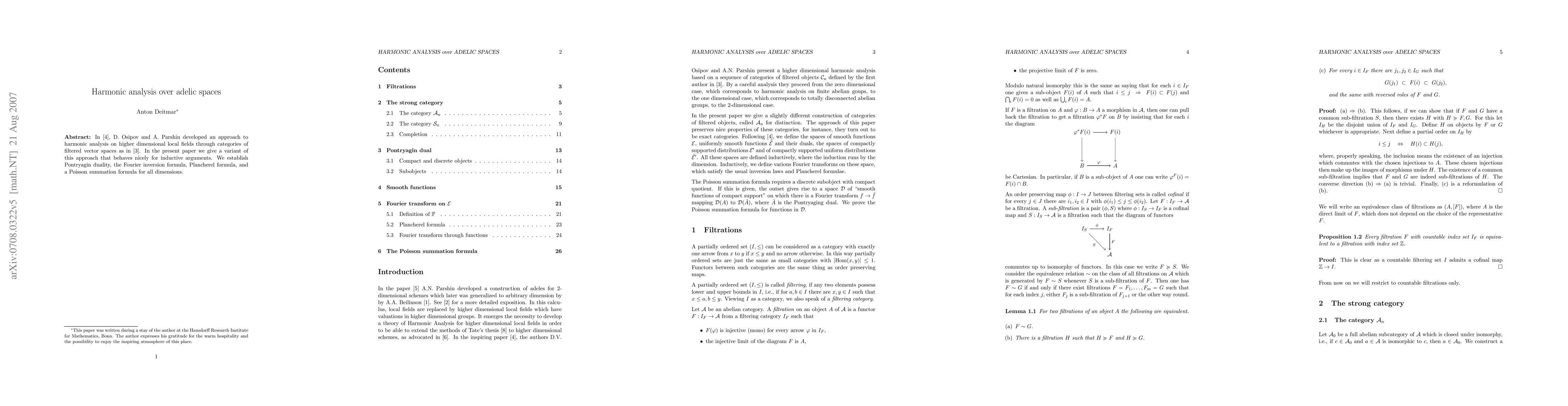 Extending ideas of A.N. Parshin and D.V. Osipov, Harmonic Analysis is developed for filtered infinite dimensional modules over a ring. We establish Pontryagin duality, the Fourier inversion formula, Plancherel formula and Poisson summation formula for all dimensions.