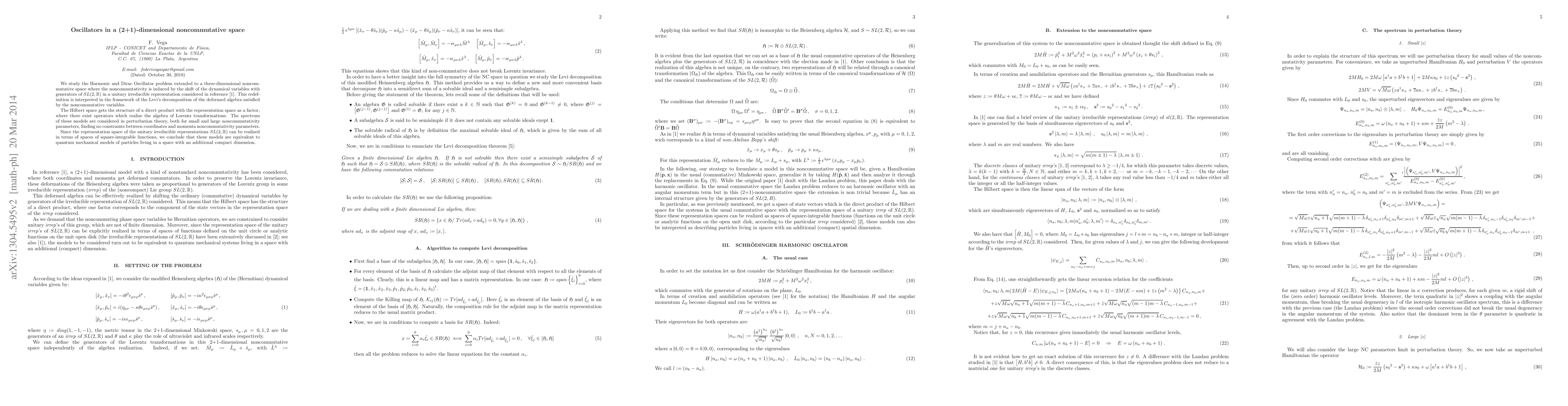 We study the Harmonic and Dirac Oscillator problem extended to a three-dimensional noncom- mutative space where the noncommutativity is induced by a shift of the dynamical variables with generators of SL(2;R) in a unitary irreducible representation. The Hilbert space gets the structure of a direct product with the representation space as a factor, where there exist operators which realize the algebra of Lorentz transformations. The spectrum of these models are considered in perturbation theory, both for small and large noncommutativity parameters, finding no constraints between coordinates and momenta noncom- mutativity parameters. Since the representation space of the unitary irreducible representations SL(2;R) can be realized in terms of spaces of square-integrable functions, we conclude that these models are equivalent to quantum mechanical models of particles living in a space with an additional compact dimension. PACS: 03.65.-w; 11.30.Cp; 02.40.Gh