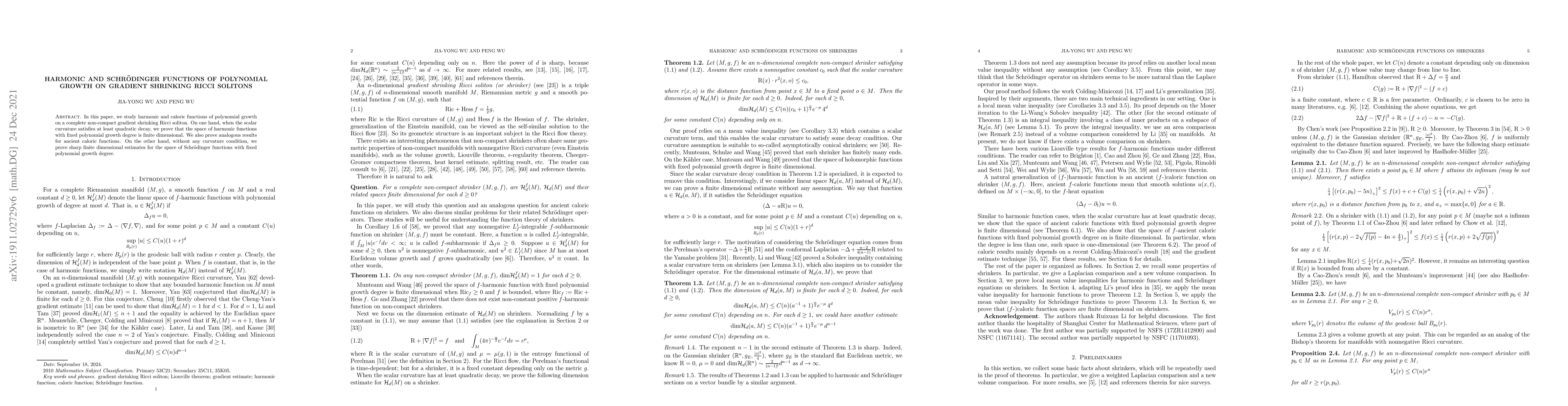 This paper investigates harmonic and caloric functions of polynomial growth on gradient shrinking Ricci solitons, proving finite dimensionality for harmonic functions under quadratic decay of scalar curvature and sharp estimates for Schrödinger functions regardless of curvature conditions.