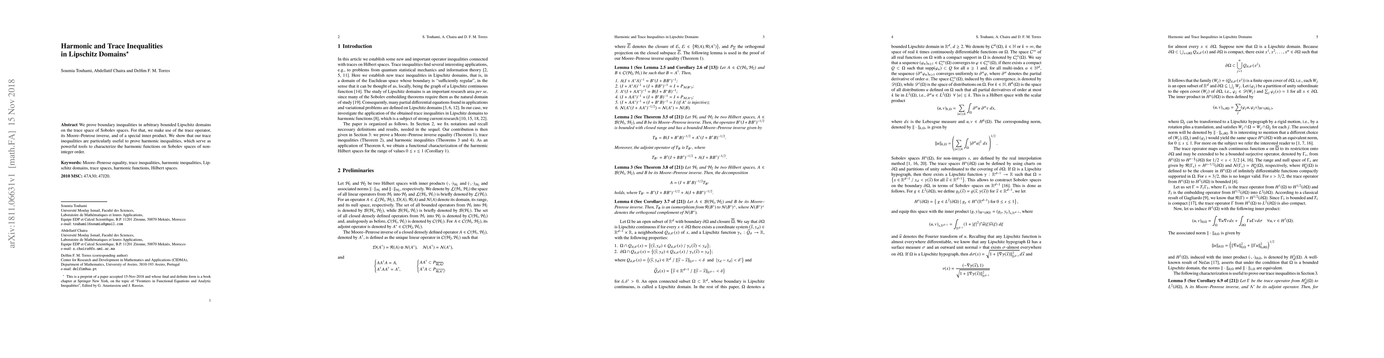 Researchers proved boundary inequalities for harmonic functions in bounded Lipschitz domains on Sobolev spaces, using a new trace operator method.