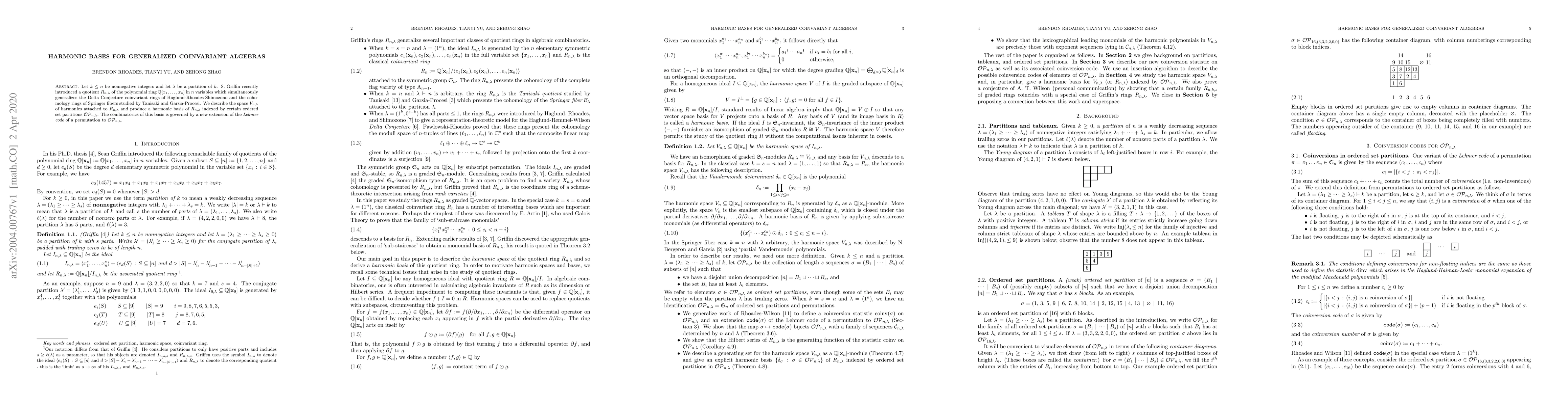 Let $k \leq n$ be nonnegative integers and let $\lambda$ be a partition of $k$. S. Griffin recently introduced a quotient $R_{n,\lambda}$ of the polynomial ring $\mathbb{Q}[x_1, \dots, x_n]$ in $n$ variables which simultaneously generalizes the Delta Conjecture coinvariant rings of Haglund-Rhoades-Shimozono and the cohomology rings of Springer fibers studied by Tanisaki and Garsia-Procesi. We describe the space $V_{n,\lambda}$ of harmonics attached to $R_{n,\lambda}$ and produce a harmonic basis of $R_{n,\lambda}$ indexed by certain ordered set partitions $\mathcal{OP}_{n,\lambda}$. The combinatorics of this basis is governed by a new extension of the {\em Lehmer code} of a permutation to $\mathcal{OP}_{n, \lambda}$.