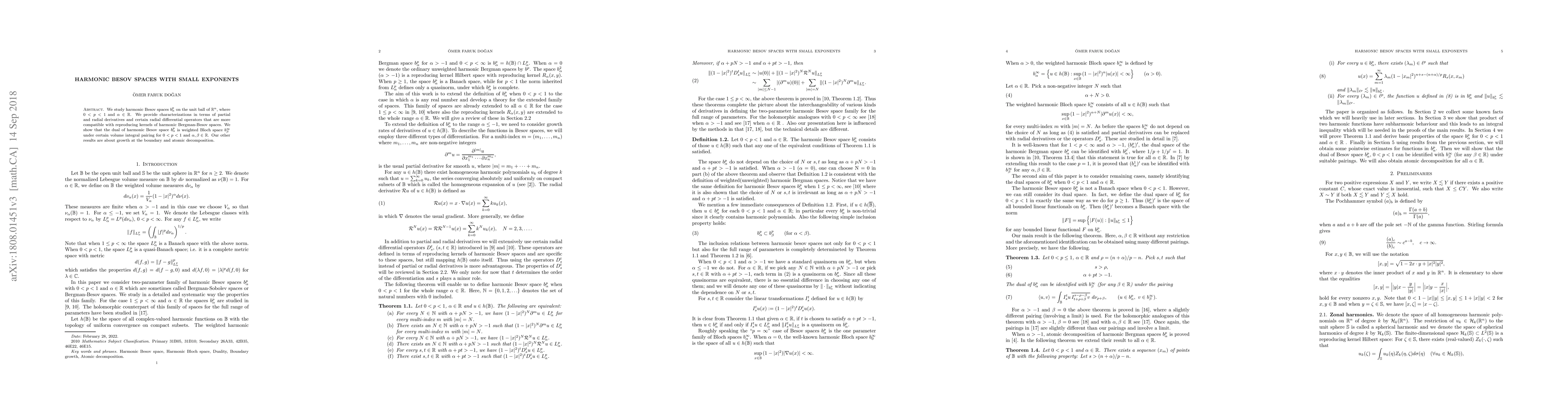 We study harmonic Besov spaces $b^p_\alpha$ on the unit ball of $\mathbb{R}^n$, where $0