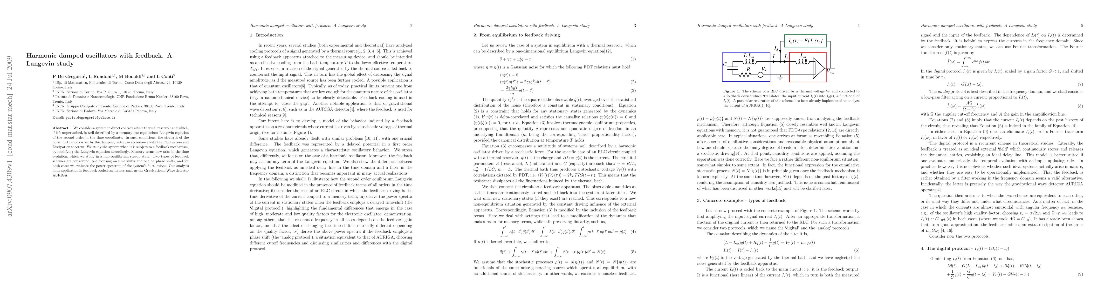 This study investigates how adding feedback to a harmonic oscillator affects its noise fluctuations, finding that memory terms arise in the time evolution and impacting power spectrum analysis.