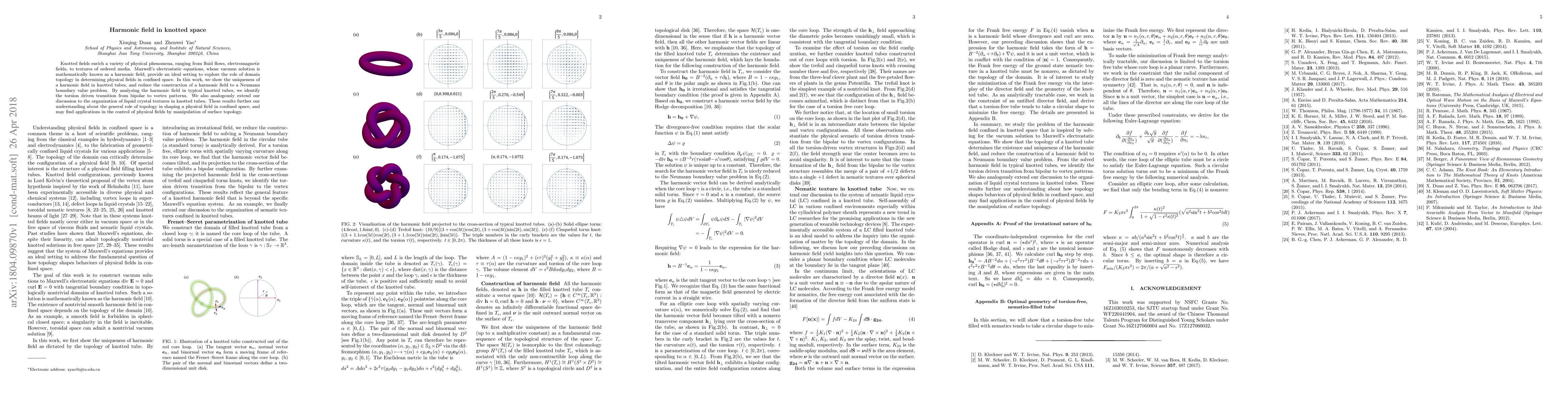 This paper explores the behavior of harmonic fields in knotted tubes, demonstrating the unique patterns arising from torsion-driven transitions. It connects these findings to liquid crystal textures and highlights the role of topology in shaping physical fields in confined spaces.
