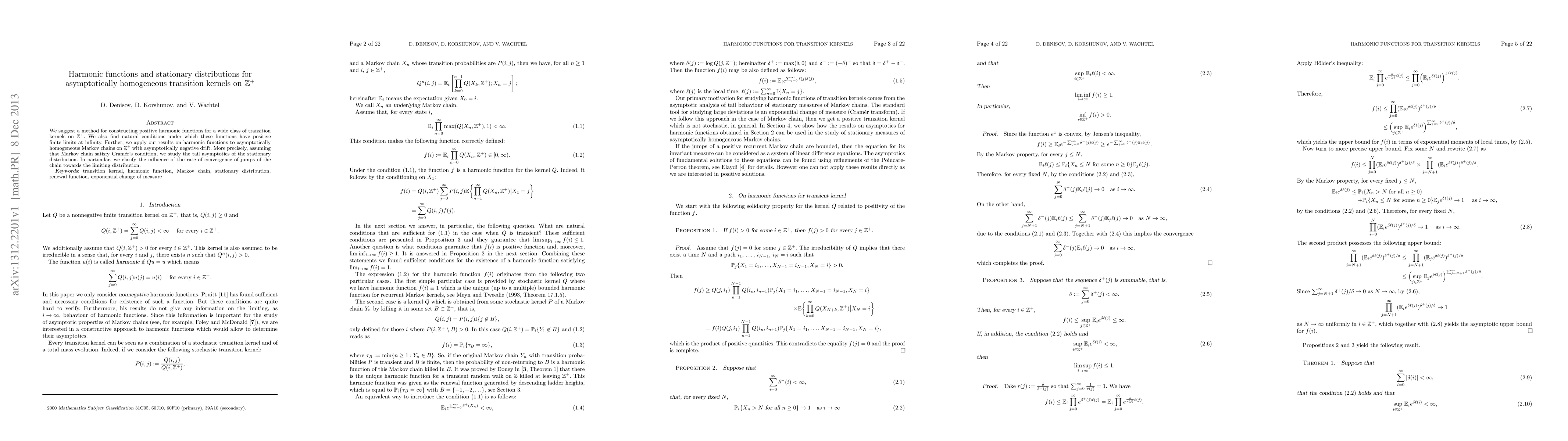 This paper proposes a method to construct positive harmonic functions for transition kernels on positive integers, ensuring they have finite positive limits at infinity. It further investigates the tail asymptotics of stationary distributions for asymptotically homogeneous Markov chains under Cramér's condition, focusing on the effect of jump convergence rates on the limiting distribution.