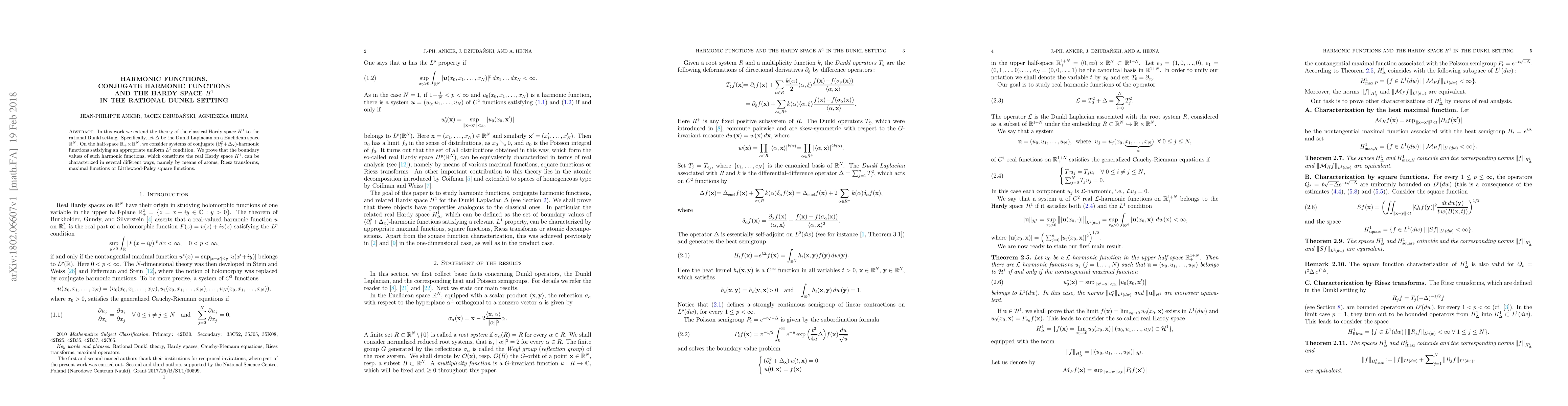 This paper extends the classical Hardy space $H^1$ to the rational Dunkl setting, focusing on the Dunkl Laplacian on $\mathbb{R}^N$. It characterizes the boundary values of conjugate harmonic functions on $\mathbb{R}_+\times\mathbb{R}^N$ using atoms, Riesz transforms, maximal functions, and Littlewood-Paley square functions.