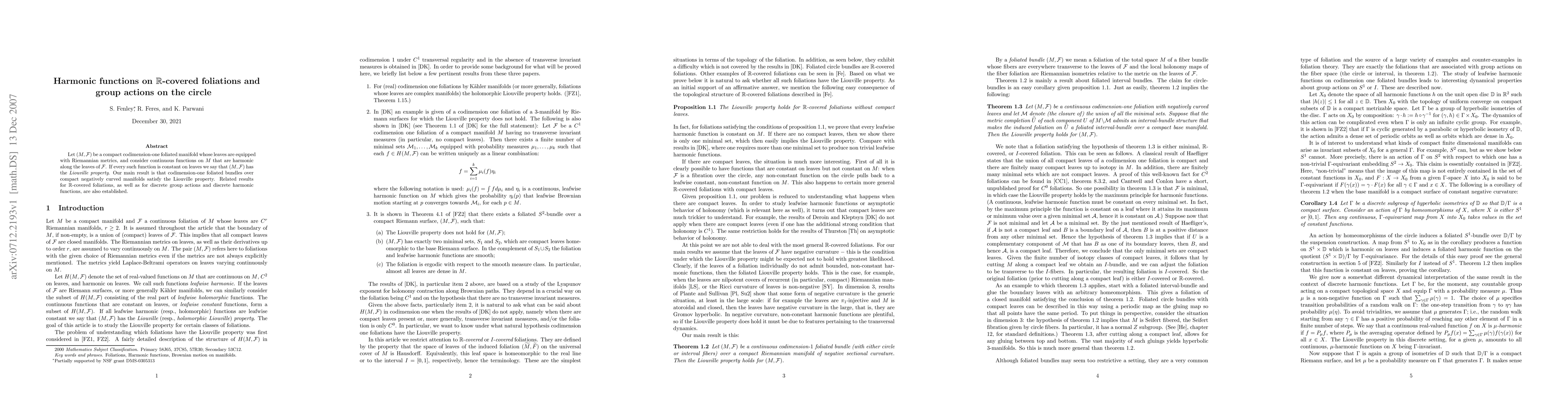 This paper proves that codimension-one foliated bundles over compact negatively curved manifolds exhibit the Liouville property, meaning any harmonic function on these manifolds that is continuous along the foliated leaves must be constant on each leaf. The study also extends these findings to R-covered foliations and discrete group actions.