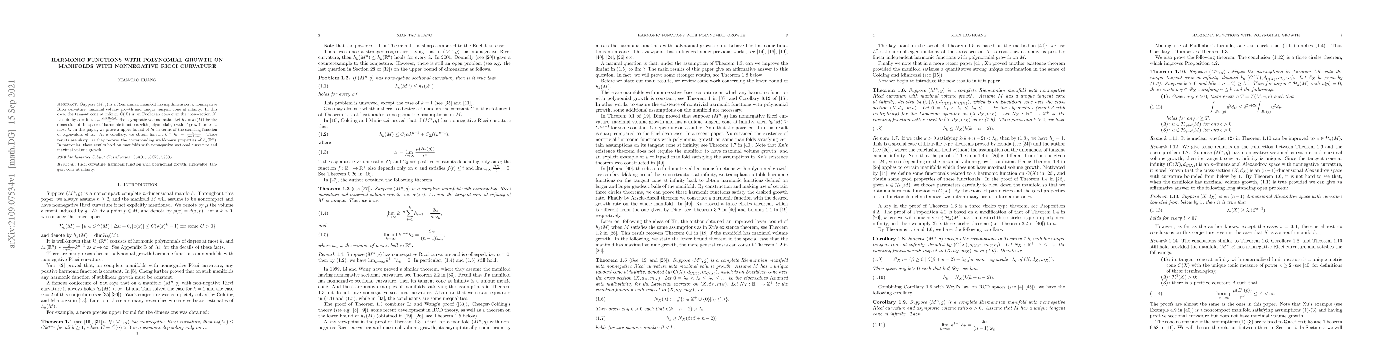 Suppose $(M,g)$ is a Riemannian manifold having dimension $n$, nonnegative Ricci curvature, maximal volume growth and unique tangent cone at infinity. In this case, the tangent cone at infinity $C(X)$ is an Euclidean cone over the cross-section $X$. Denote by $\alpha=\lim_{r\rightarrow\infty}\frac{\mathrm{Vol}(B_{r}(p))}{r^{n}}$ the asymptotic volume ratio. Let $h_{k}=h_{k}(M)$ be the dimension of the space of harmonic functions with polynomial growth of growth order at most $k$. In this paper, we prove a upper bound of $h_{k}$ in terms of the counting function of eigenvalues of $X$. As a corollary, we obtain $\lim_{k\rightarrow\infty}k^{1-n}h_{k}=\frac{2\alpha}{(n-1)!\omega_{n}}$. These results are sharp, as they recover the corresponding well-known properties of $h_{k}(\mathbb{R}^{n})$. In particular, these results hold on manifolds with nonnegative sectional curvature and maximal volume growth.