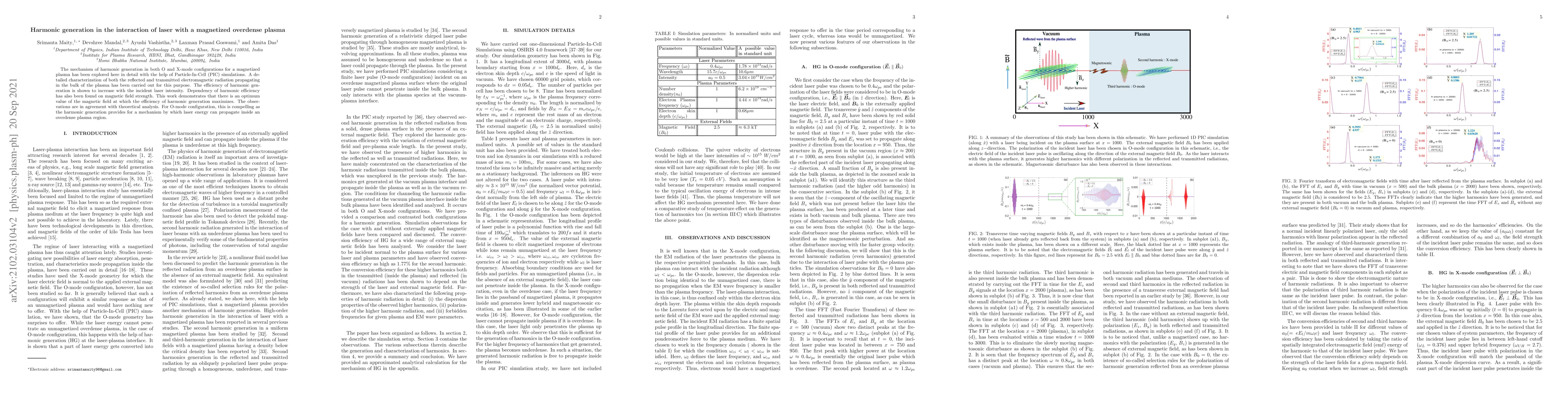 The mechanism of harmonic generation in both O and X-mode configurations for a magnetized plasma has been explored here in detail with the help of Particle-In-Cell (PIC) simulations. A detailed characterization of both the reflected and transmitted electromagnetic radiation propagating in the bulk of the plasma has been carried out for this purpose. The efficiency of harmonic generation is shown to increase with the incident laser intensity. Dependency of harmonic efficiency has also been found on magnetic field strength. This work demonstrates that there is an optimum value of the magnetic field at which the efficiency of harmonic generation maximizes. The observations are in agreement with theoretical analysis. For O-mode configuration, this is compelling as the harmonic generation provides for a mechanism by which laser energy can propagate inside an overdense plasma region.