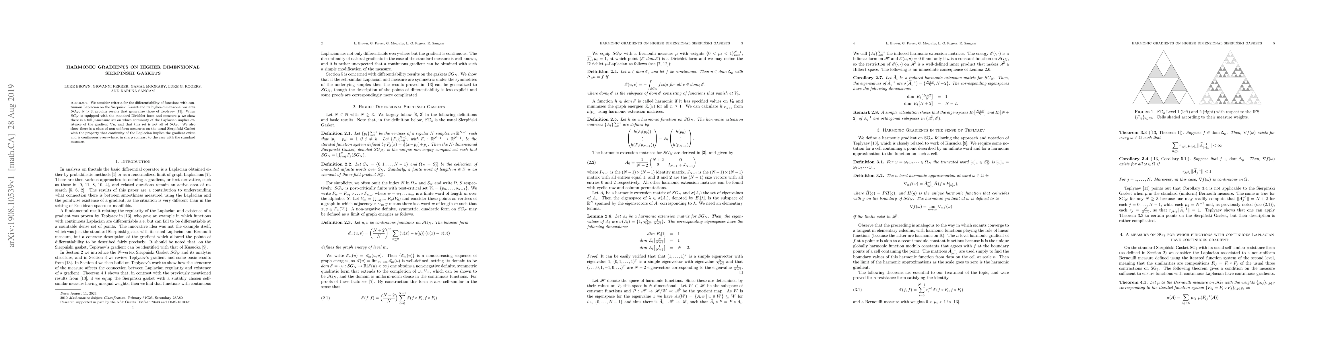 We consider criteria for the differentiability of functions with continuous Laplacian on the Sierpinski Gasket and its higher-dimensional variants $SG_N$, $N>3$, proving results that generalize those of Teplyaev. When $SG_N$ is equipped with the standard Dirichlet form and measure $\mu$ we show there is a full $\mu$-measure set on which continuity of the Laplacian implies existence of the gradient $\nabla u$, and that this set is not all of $SG_N$. We also show there is a class of non-uniform measures on the usual Sierpinski Gasket with the property that continuity of the Laplacian implies the gradient exists and is continuous everywhere, in sharp contrast to the case with the standard measure.