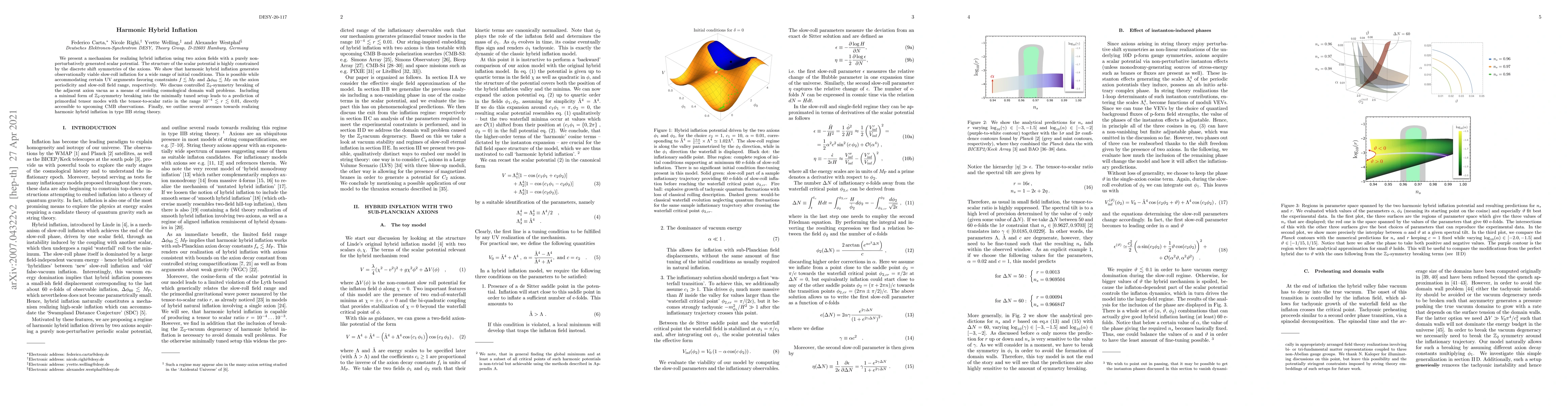 We present a mechanism for realizing hybrid inflation using two axion fields with a purely non-perturbatively generated scalar potential. The structure of scalar potential is highly constrained by the discrete shift symmetries of the axions. We show that harmonic hybrid inflation generates observationally viable slow-roll inflation for a wide range of initial conditions. This is possible while accommodating certain UV arguments favoring constraints $f\lesssim M_{\rm P}$ and $\Delta\phi_{60}\lesssim M_{\rm P}$ on the axion periodicity and slow-roll field range, respectively. We discuss controlled $\mathbb{Z}_2$-symmetry breaking of the adjacent axion vacua as a means of avoiding cosmological domain wall problems. Including a minimal form of $\mathbb{Z}_2$-symmetry breaking into the minimally tuned setup leads to a prediction of primordial tensor modes with the tensor-to-scalar ratio in the range $10^{-4}\lesssim r \lesssim 0.01$, directly accessible to upcoming CMB observations. Finally, we outline several avenues towards realizing harmonic hybrid inflation in type IIB string theory.